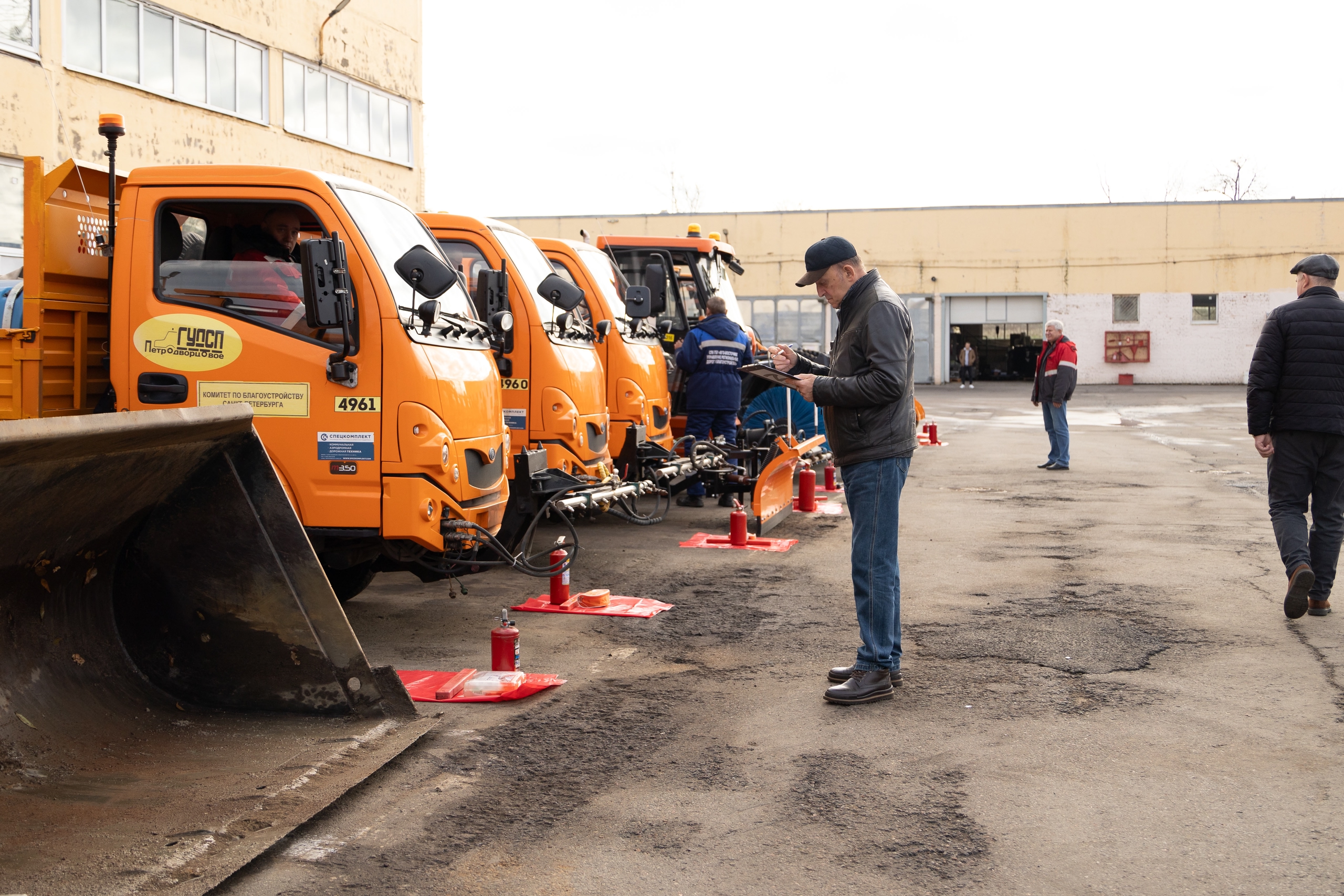 7 октября в Петродворцовом районе состоялся смотр готовности уборочной техники Юго-восточного управления региональных дорог и благоустройства. 75 единиц техники полностью подготовлено к зимнему сезону. Среди них — 27 машин для уборки проезжей части и 35 единиц тротуарной техники, включая четыре новых мультимобиля СК-15 и 13 погрузчиков.