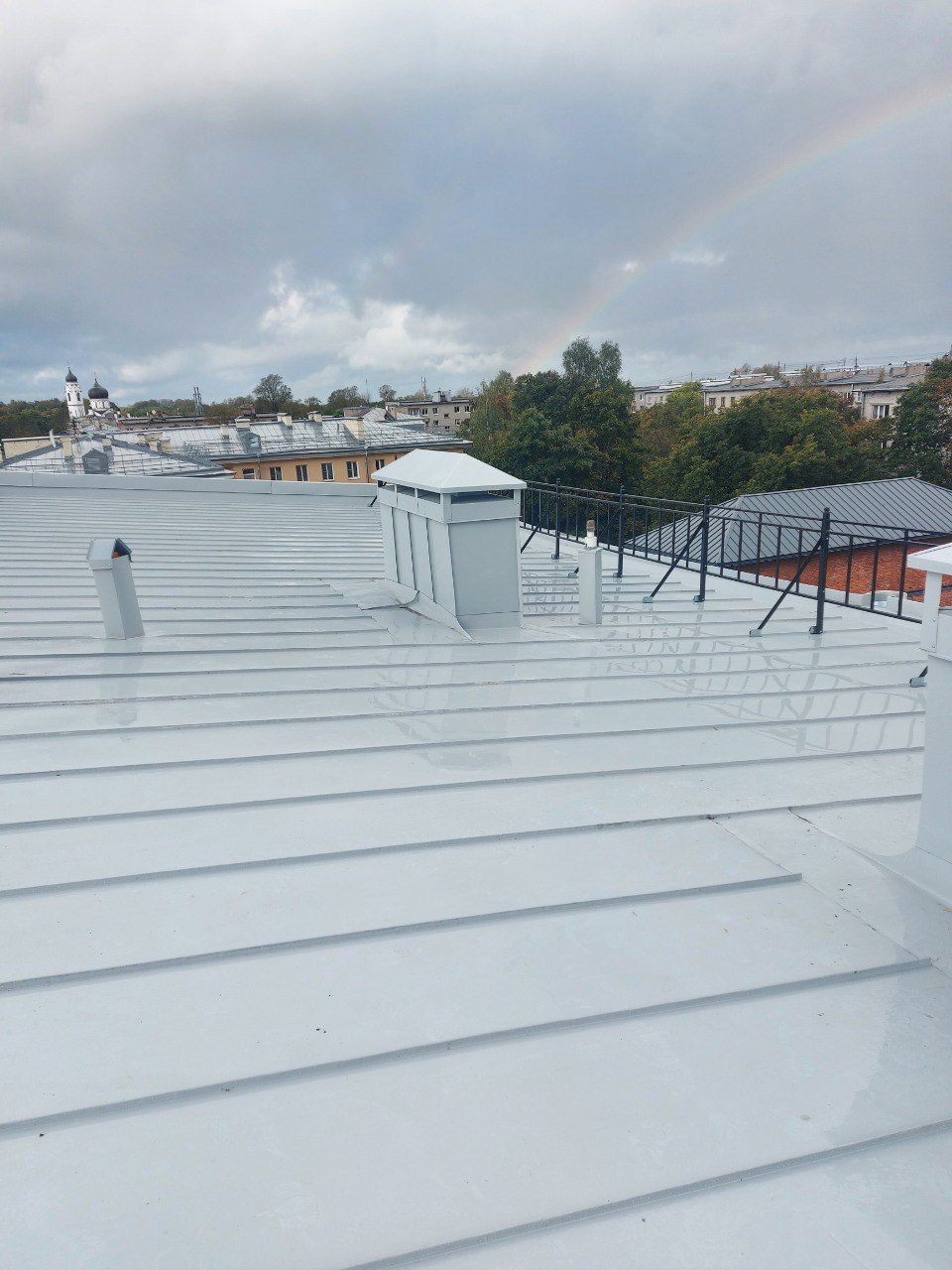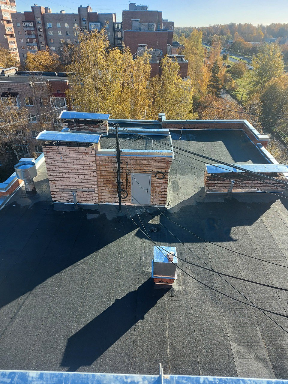 Работы по капитальному ремонту включали полную замену кровельного покрытия и ограждений, а также утепление чердачных перекрытий.