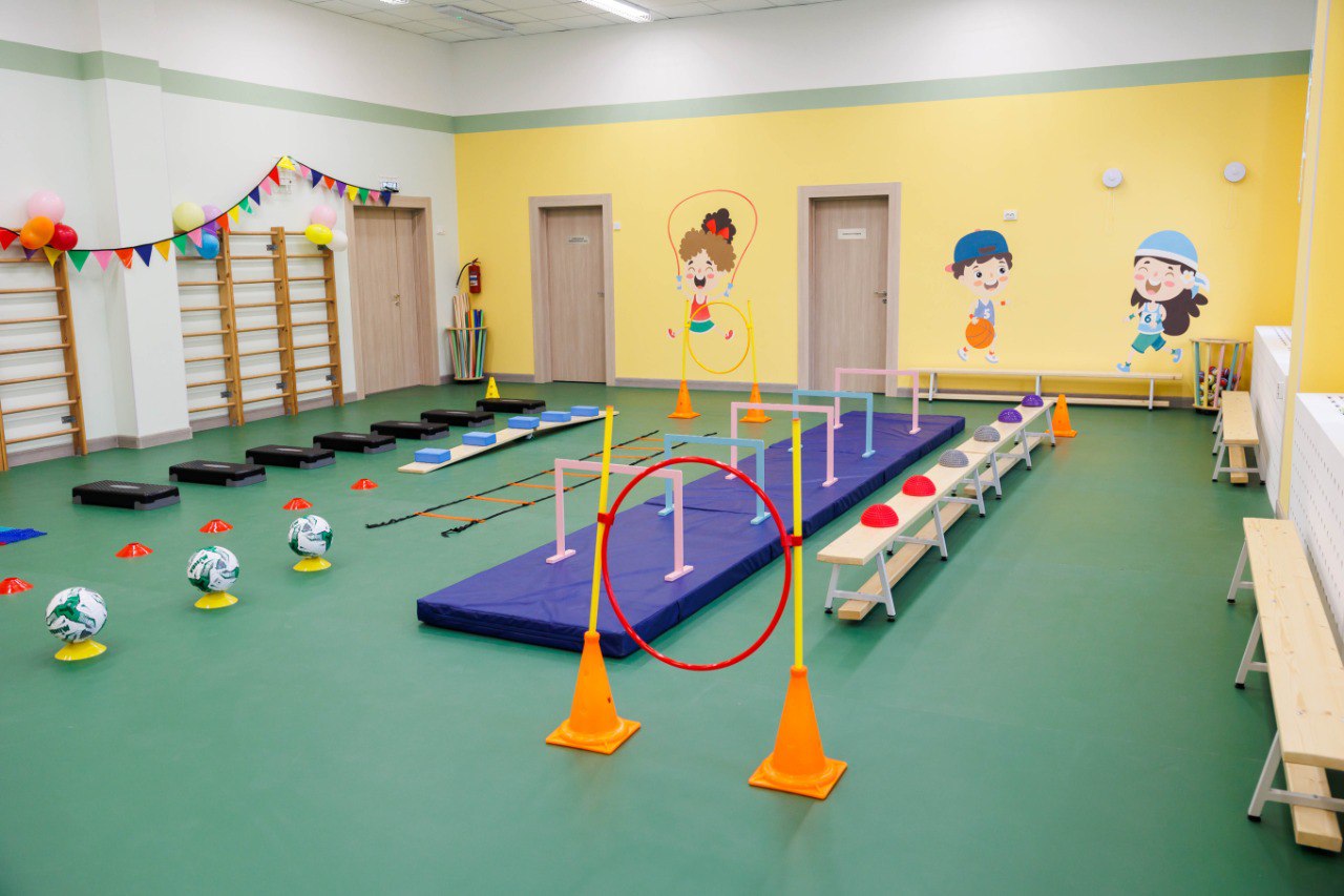 Малышей ждут просторные групповые помещения со спальнями, кабинеты для занятий, собственный бассейн, большой спортивный и музыкальный залы со всем необходимым для творчества и физического развития.