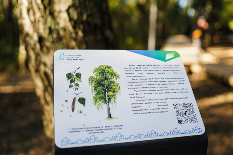 Дорожки буквально огибают зелёные насаждения, создавая живописный променад. Настил выполнен из природной лиственницы на винтовых сваях, что обеспечивает минимальное воздействие на окружающую среду. Вдоль маршрута установлены познавательные стенды, которые помогают жителям и туристам лучше узнать о природных богатствах региона. Кроме того, в сквере установлено освещение: 53 светильника торшерного типа.