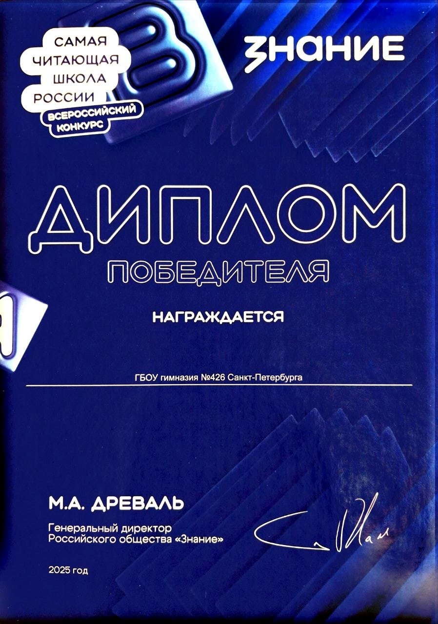 Конкурс «Самая читающая школа России» организован Российским обществом «Знание» совместно с Министерством просвещения по поручению президента Владимира Путина. На него поступило более 2000 заявок со всей страны. В номинации «Лучшая практика по вовлечению в чтение учащихся 1–4 классов» команда гимназии № 426 Петродворцового района Санк-Петербурга — Елена Перевозкина, Алёна Смелкова, Юлия Павлова, Екатерина Козлова, Анна Станиславчик — представила многолетний проект «Бианковские чтения» и вошла в число 150 финалистов, а затем — в число победителей.