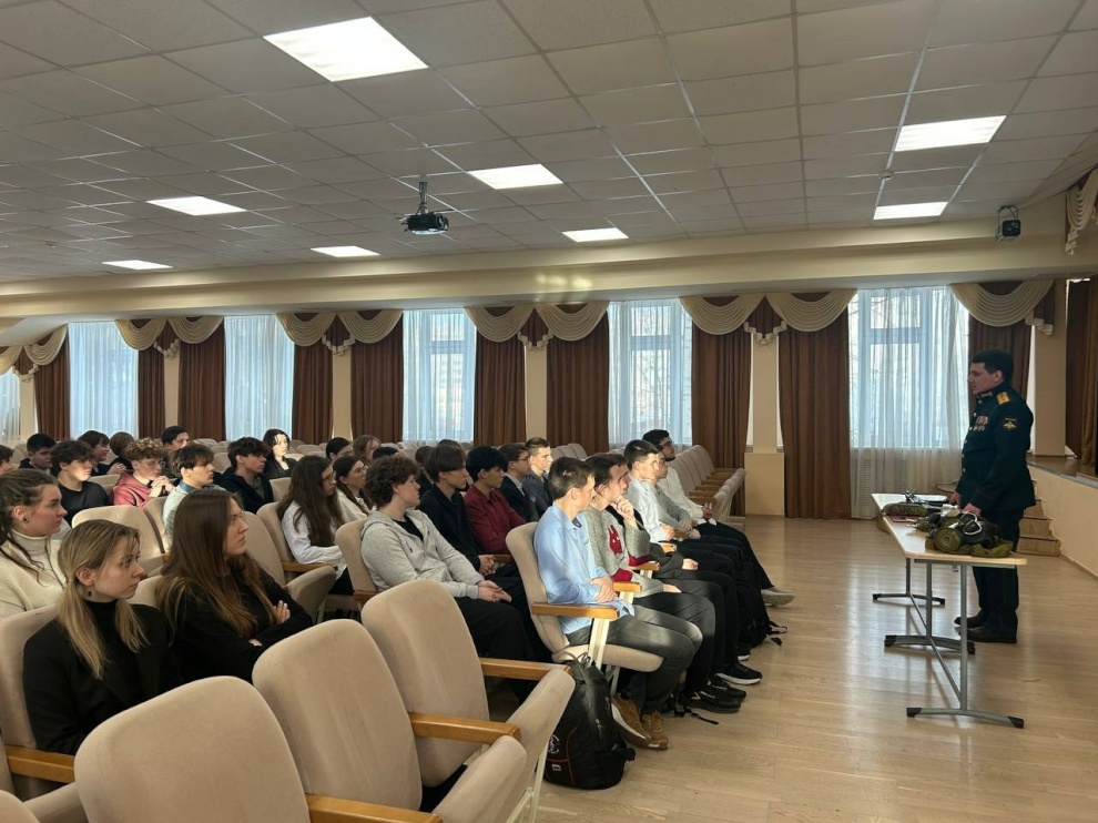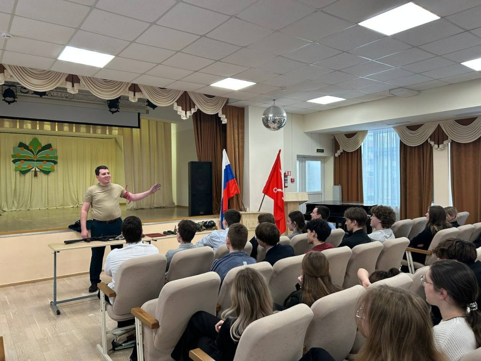 Алексей Сергеевич, младший лейтенант, участник СВО, представитель Ассоциации ветеранов СВО Петродворцового района, рассказал ребятам о поступлении в военные учебные заведения и специфике обучения в них. Отдельно были рассмотрены вопросы, касающиеся всех молодых людей призывного возраста, в том числе первоначальная подготовка и военные сборы. Старшеклассников интересовали особенности поступления, социальные гарантии для курсантов и офицеров, а также перспективы службы после окончания вуза.