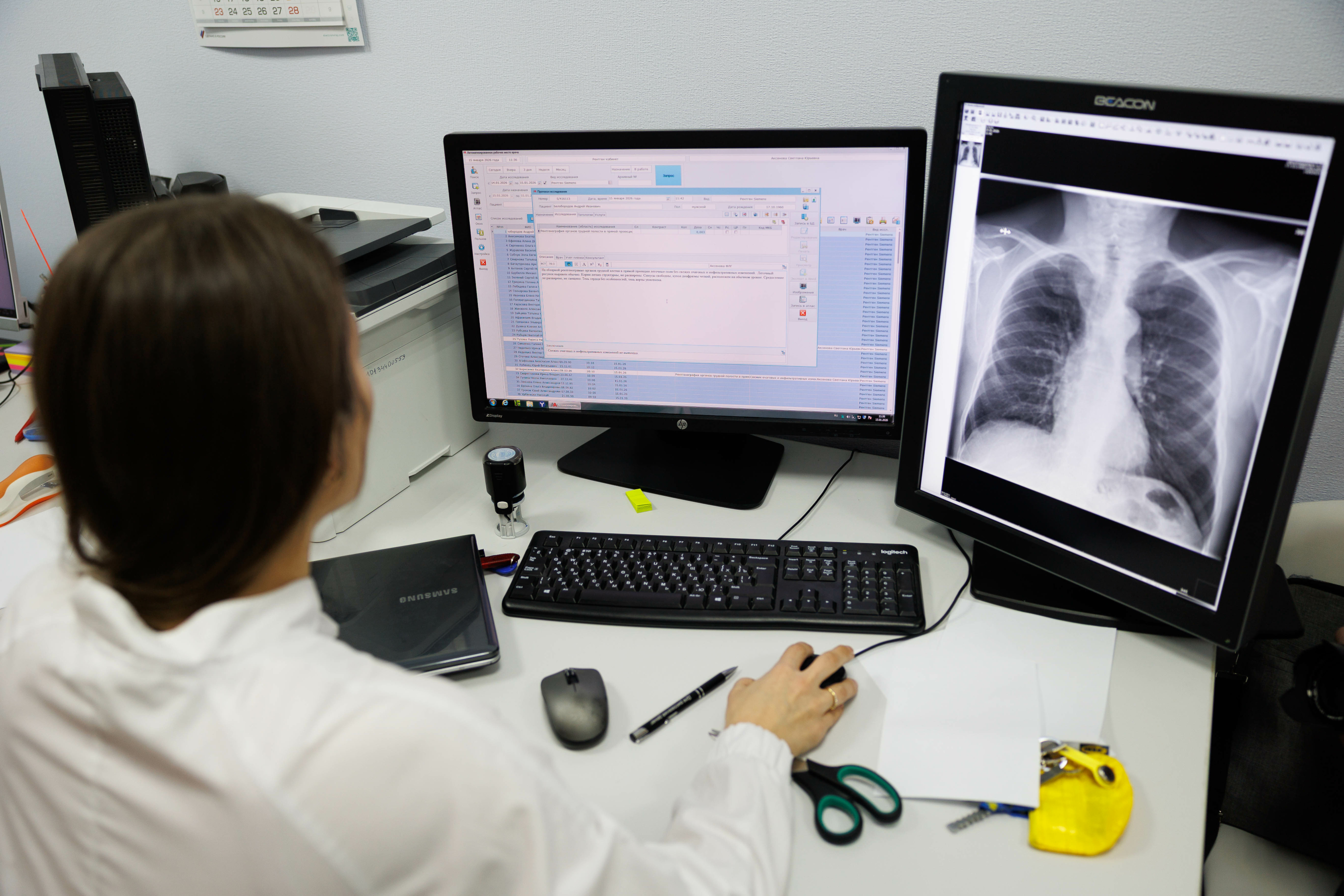 В обновлённую поликлинику закуплено 1800 единиц оборудования и мебели. В их числе высокотехнологичное: флюорограф, маммограф, стоматологические аппараты, аппаратура для ультразвуковых исследований. В учреждении впервые появился остоденситометр для ранней диагностики остеопороза.