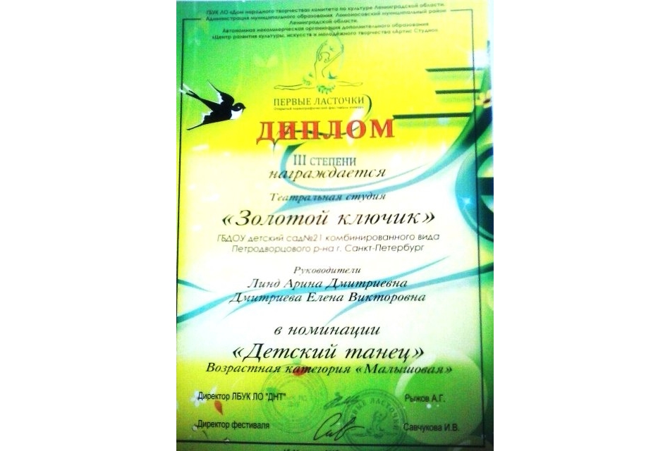 Воспитанники 21-го детского сада стали дипломантами конкурса "Первые ласточки"
