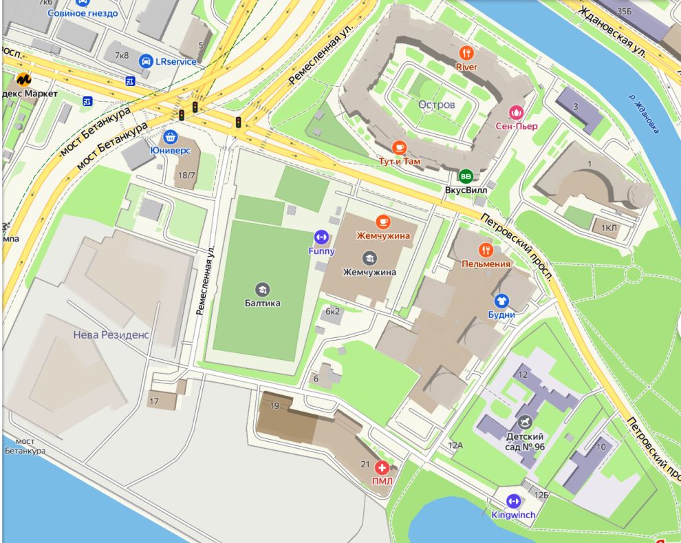 От станции метро Петроградская – автобус № 277 (3,2 км)