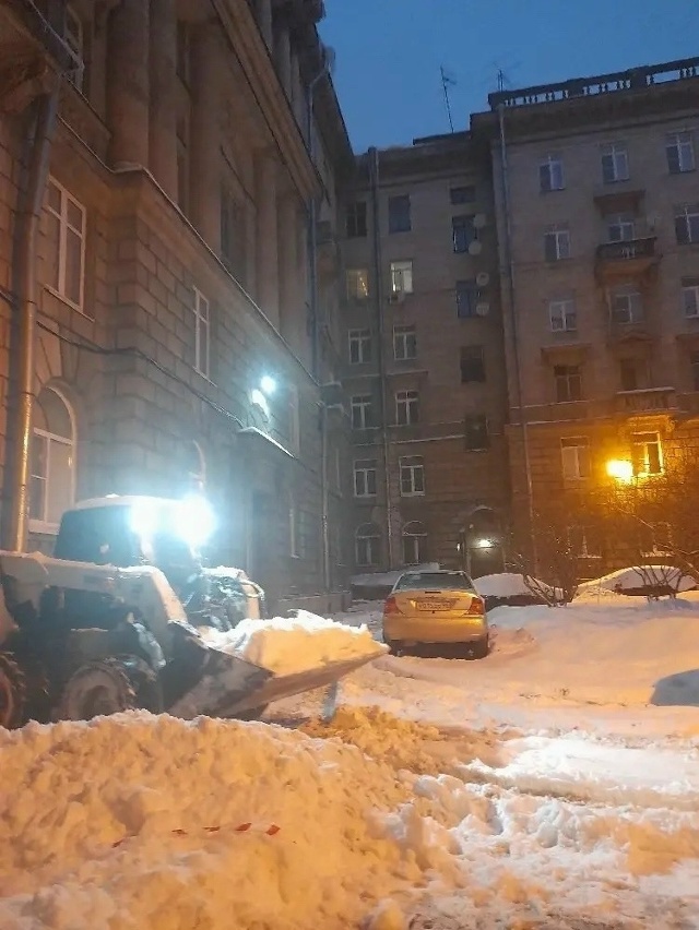 В Петроградском районе 489 дворников устраняют последствия мощной метели на внутриквартальных территориях