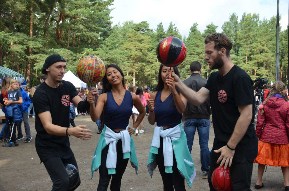 В парке работали интерактивные спортивные площадки, на сцене сменяли друг друга барабанщицы, жонглеры и чирлидеры. Кроме того, выступали вокалисты и танцевальные коллективы.