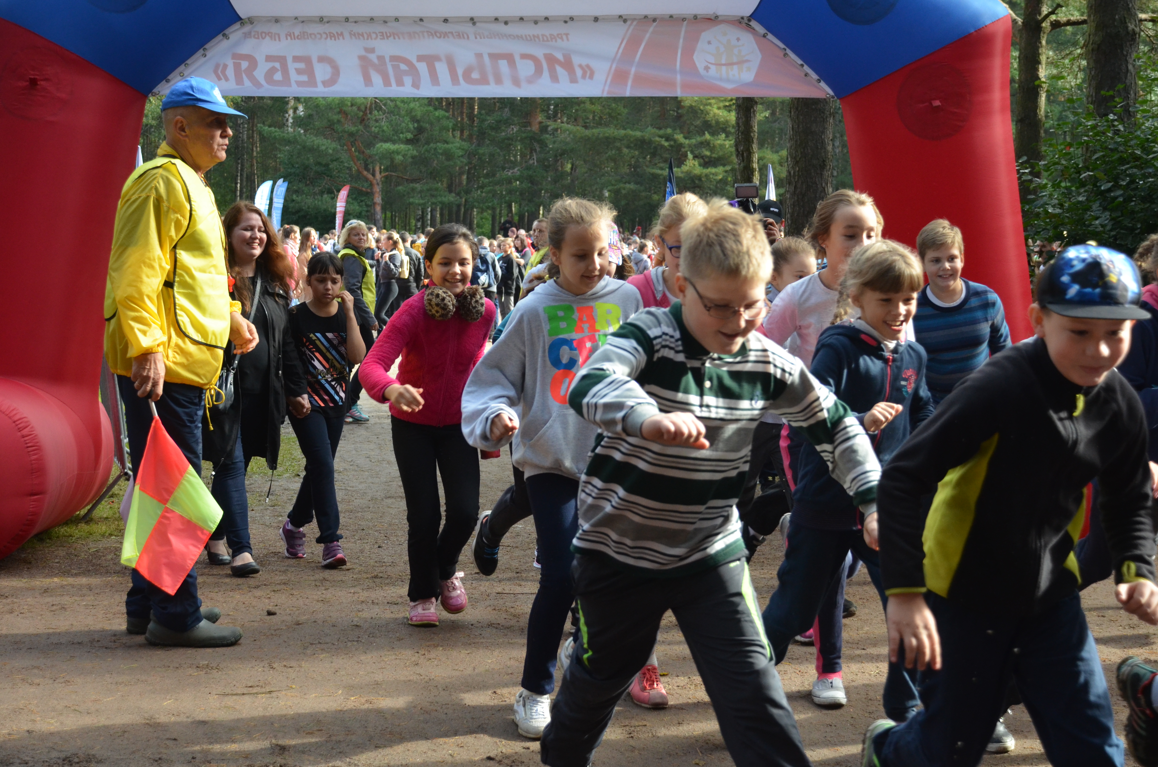 Глава сделал стартовый выстрел и к финишу ринулись самые младшие участники забега. Так называемый "беби-кросс" собрал рекордное количество бегунов - стометровку пробежали 314 малышей. Далее на старт вышли школьники. Подросткам предстояло выполнить забег на 500 метров.