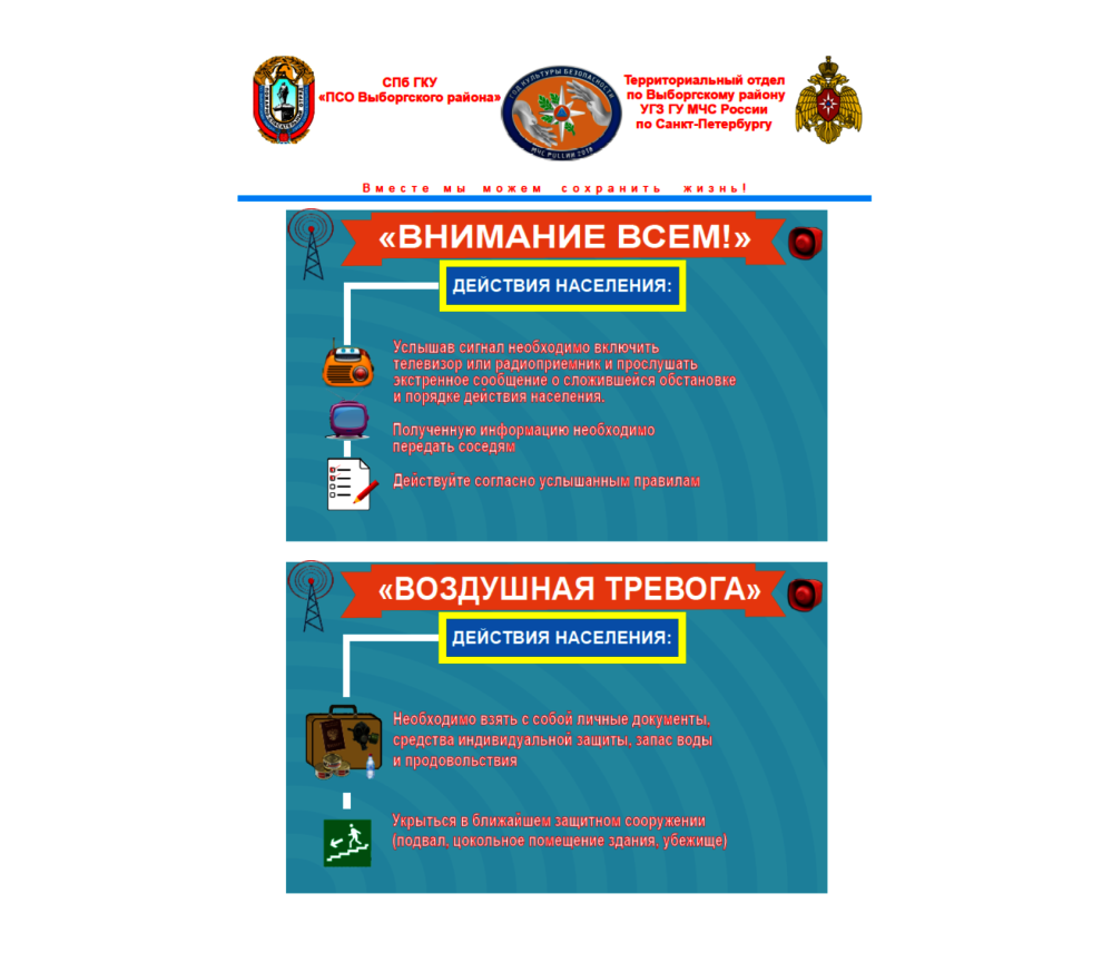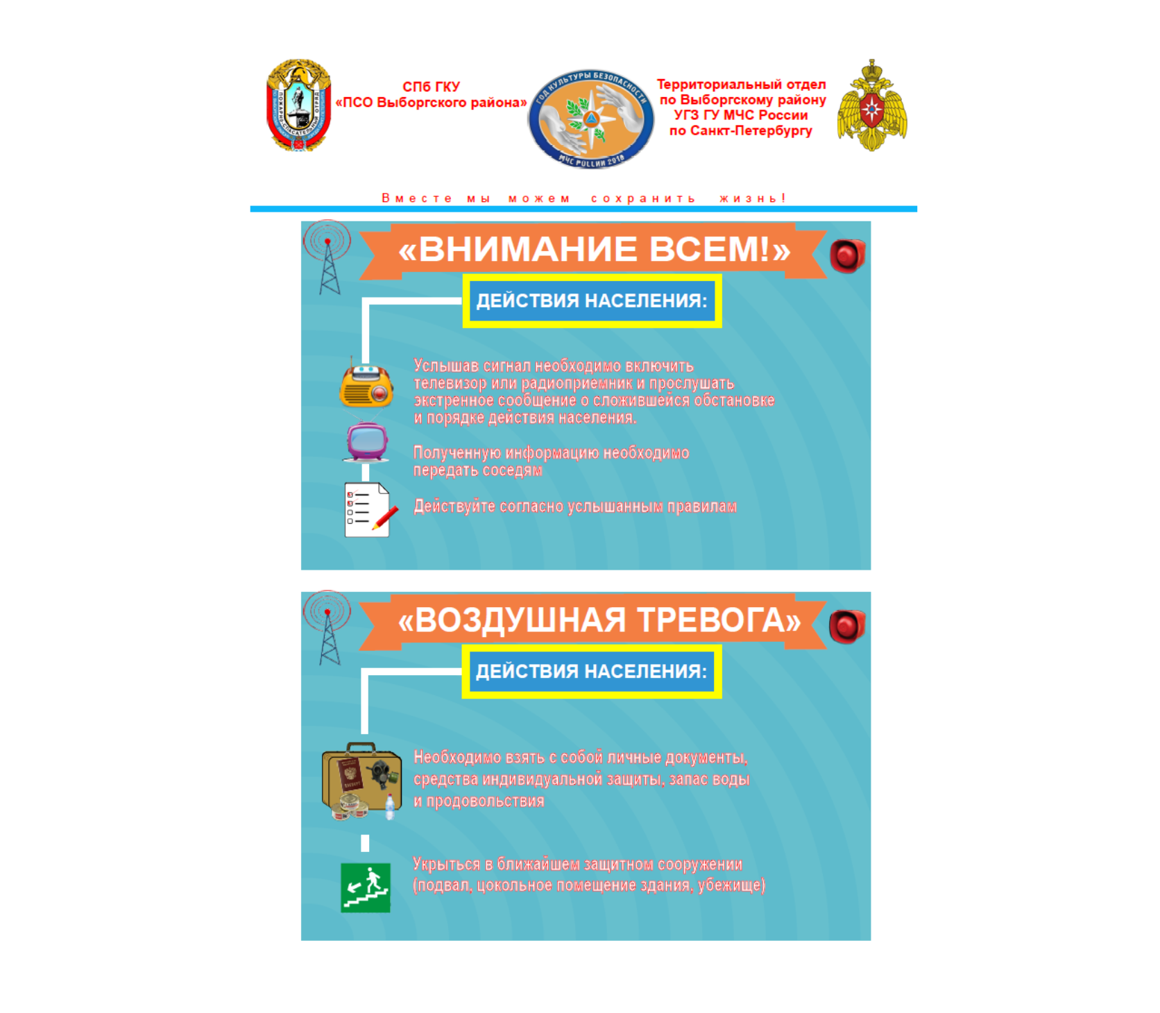 Будьте внимательны к сигналам оповещения гражданской обороны и действуйте по ним в строгом соответствии с изложенными выше рекомендациями и дополнительными распоряжениями местных органов гражданской обороны.