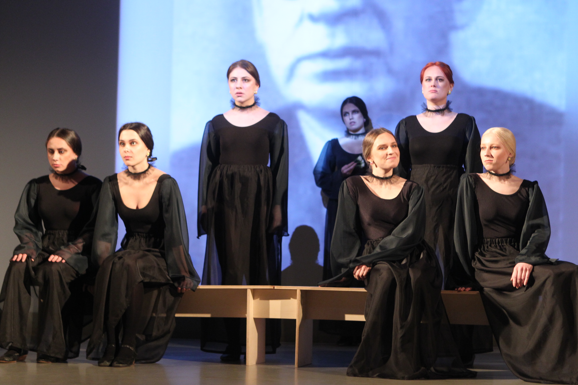 Современный и необычный формат постановки спектакля: световые эффекты и музыкальное сопровождение, темные тона одежды актеров, помогли создать картину таких противоречивых чувств, как вдохновение, материнство и любовь, раздирающих Ахматову.