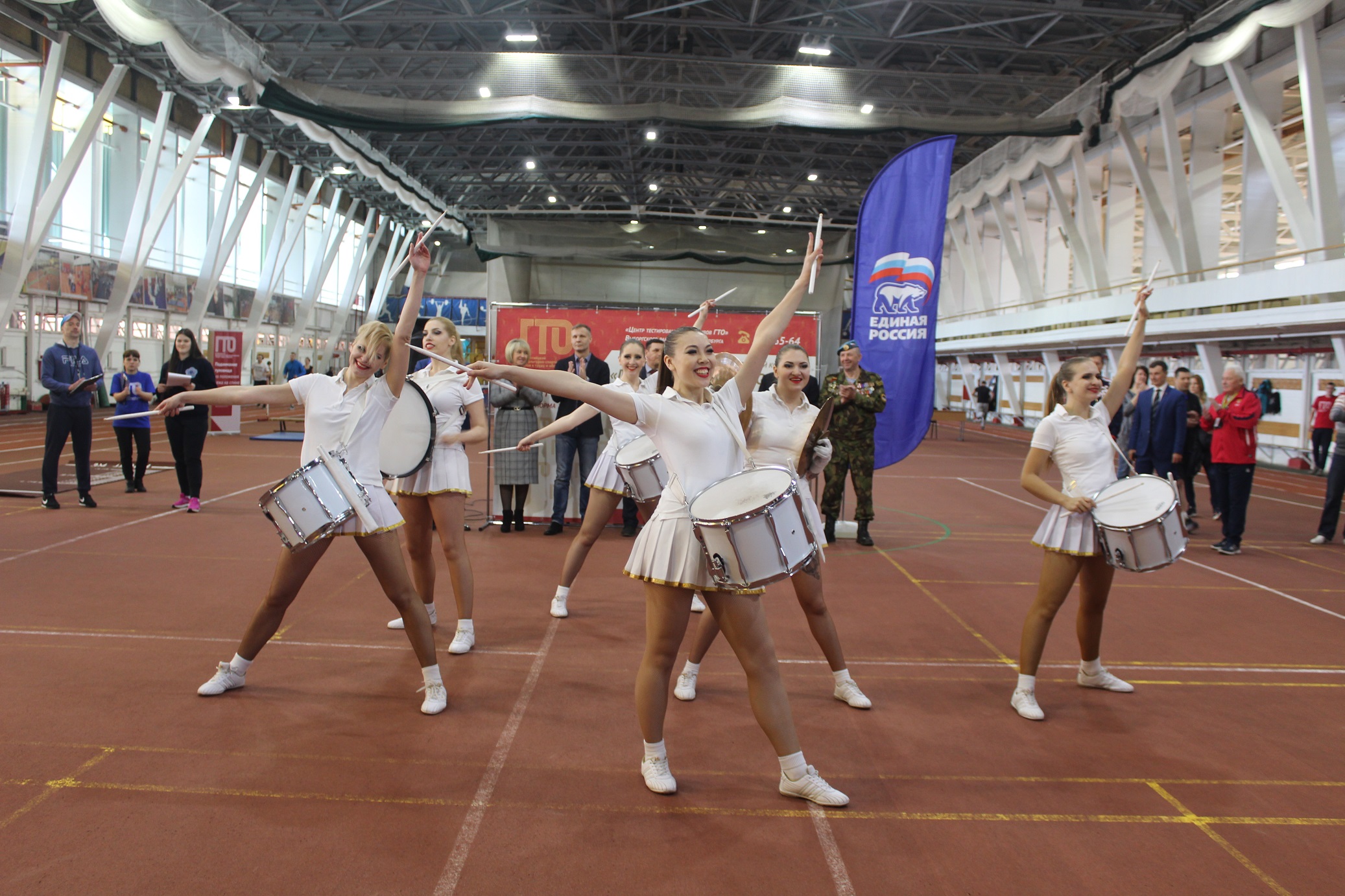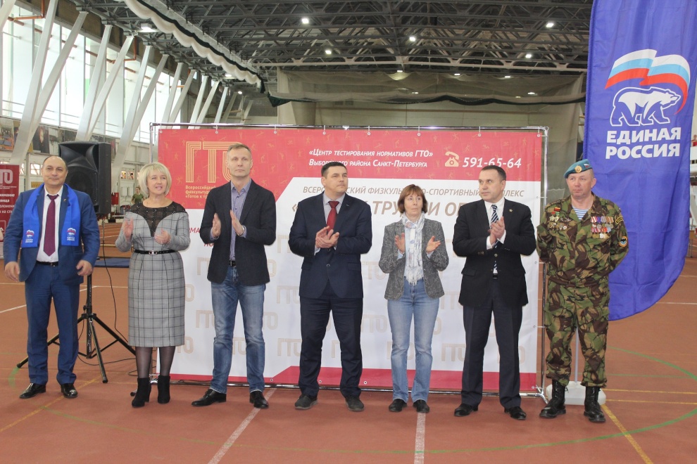 На торжественной церемонии открытия соревнований выступила заместитель главы администрации Выборгского района Наталия Никишина: «Выполнение ГТО мотивирует заниматься спортом, способствует развитию массового физкультурного движения и становится незабываемым событием для каждого из участников. Желаю вам сегодня побед и спортивного настроения!». Депутат законодательного собрания, заместитель секретаря Санкт‑Петербургского регионального отделения партии «Единая Россия» Сергей Купченко отметил символичность начала соревнований в день космонавтики. Олимпийская чемпионка, рекордсменка мира олимпийских игр, посол ГТО Татьяна Казанкина поделилась: «Мне приятно вновь оказаться в манеже спорткомплекса, где я много тренировалась и достигала высоких результатов. Хочу пожелать, чтобы сегодня вы обязательно получили золотой знак ГТО».