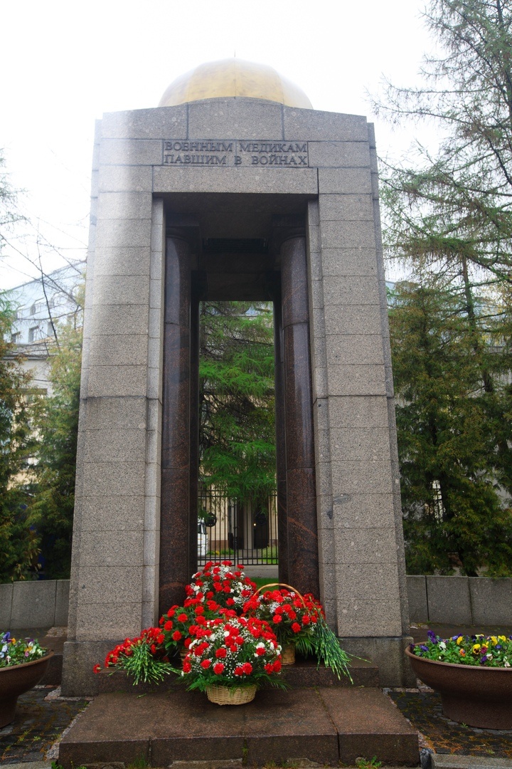 Корзины и цветы к памятнику Военным медикам, павшим в войнах, возложили от администрации Выборгского района, депутатов ЗАКСа Санкт‑Петербурга и Военно-медицинской академии. Курсанты ВИФК и школьники также приняли участие в возложении.