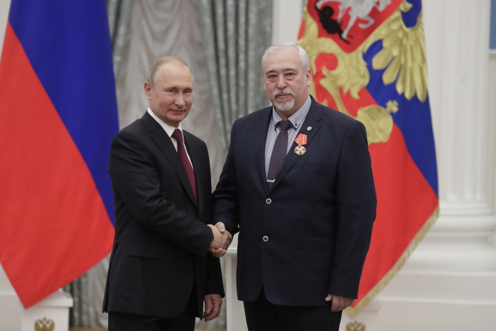 В Екатерининском зале Кремля Президент Российской Федерации Владимир Владимирович Путин вручил ордена, медали и нагрудные знаки к почетным званиям выдающимся гражданам России, а также ряду иностранных граждан.