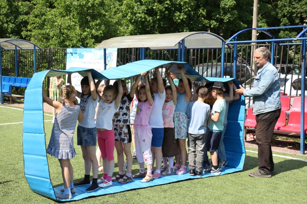 Дети приняли участие в подвижных играх и развивающих конкурсах: гигантский баскетбол, флорбол, мини-футбол, кольцеброс, дартс, шашки, а также эстафеты мега-лодки, мега-лыжи и гусеницы. Участники останавливались на каждой интерактивной площадке, пробовали свои силы и показывали хорошие результаты.