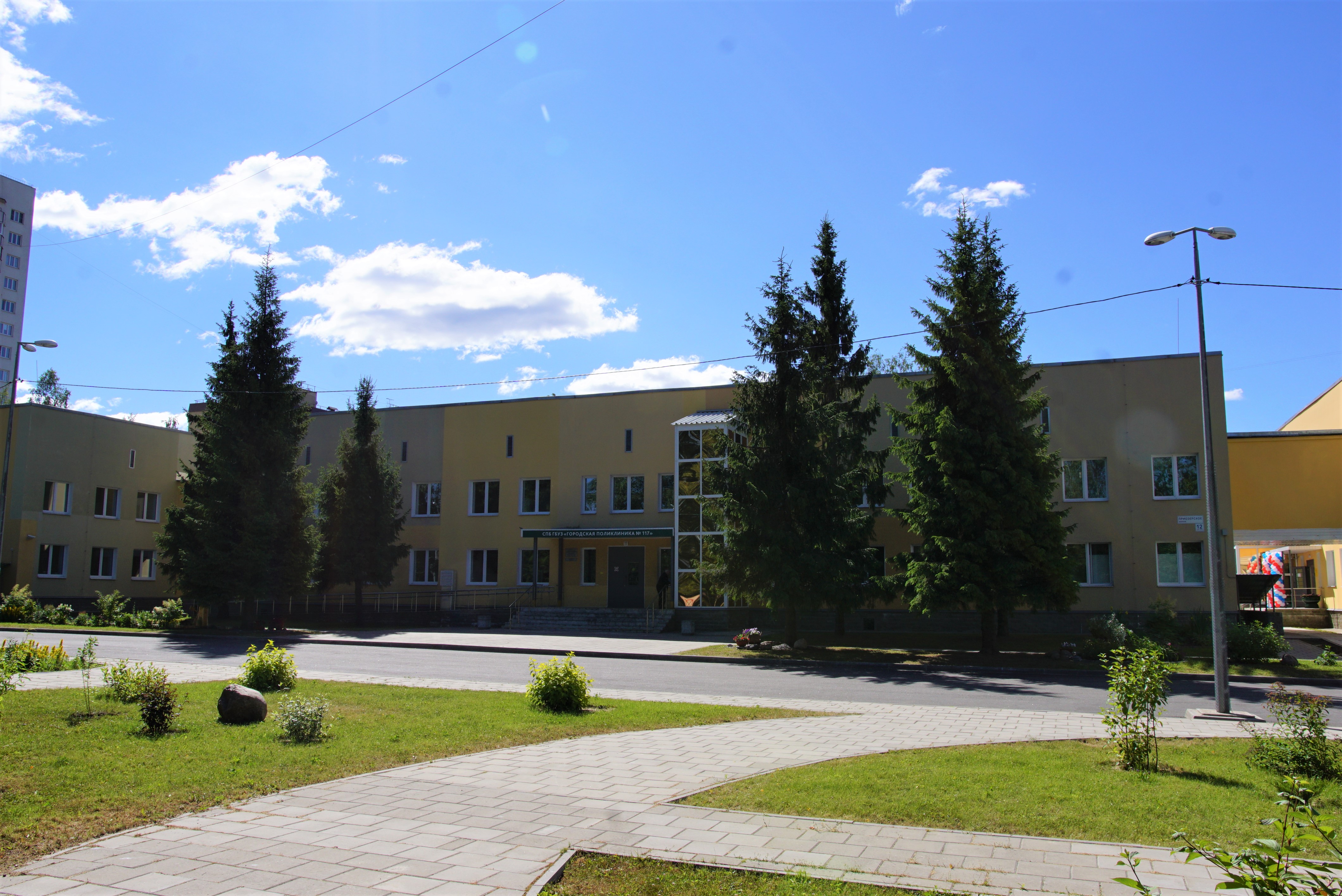 Ранее в одном из корпусов здания было открыто поликлиническое отделение «Городская поликлиника № 117» для оказания медицинской помощи взрослому населению, в другом детское поликлиническое отделение «Детская городская поликлиника № 63» для оказания медицинской помощи детскому населению. Сейчас 117 поликлиническое отделение по адресу Санкт‑Петербург, пос. Парголово, Осиновая роща, Приозерское шоссе, д. 12, лит. АЛ. Обслуживает – 4567 человек. В учреждении ведут прием высокопрофессиональные специалисты: кардиолог, невролог, хирург, травматолог-ортопед, уролог, оториноларинголог, офтальмолог, акушер-гинеколог, терапевт участковый, также проводится обследования пациентов в отделения лучевой и функциональной диагностики. Ежедневно в отделении дневного стационара проходят лечение 45 человек.