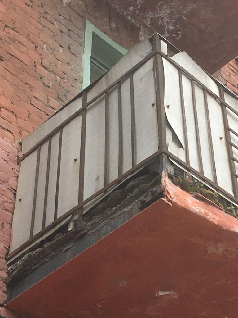 10 июня в специализированную организацию ООО «ПроСтрой» передана заявка на обследование состояния балконных. 11 июня по результатам заключения спец. организации- установлено: существует опасность внезапного обрушения балконной плиты квартиры №4. В срочном порядке подана заявка по тел 112, и при помощи МЧС данная аварийная балконная плита была демонтирована. Угроза ликвидирована.