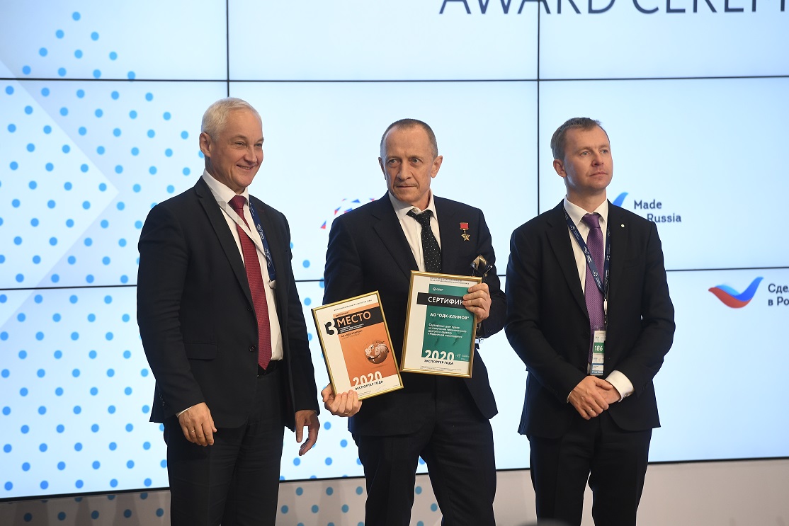В рамках Международного экспортного форума «Сделано в России» состоялась торжественная церемония награждения победителей федерального этапа Всероссийской премии в области международной кооперации и экспорта «Экспортер года», в число которых вошло АО «ОДК-Климов». Предприятие заняло третье место в номинации «Экспортер года в сфере услуг». Награду исполнительному директору ОДК-Климов Александр Ватагину вручил первый вице-премьер Правительства РФ Андрей Белоусов.