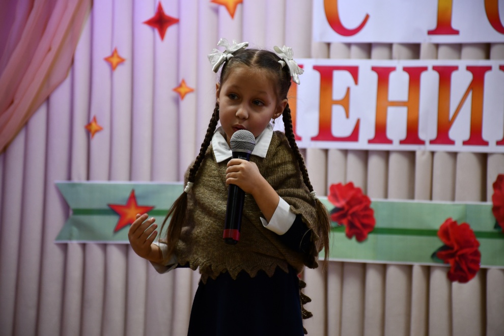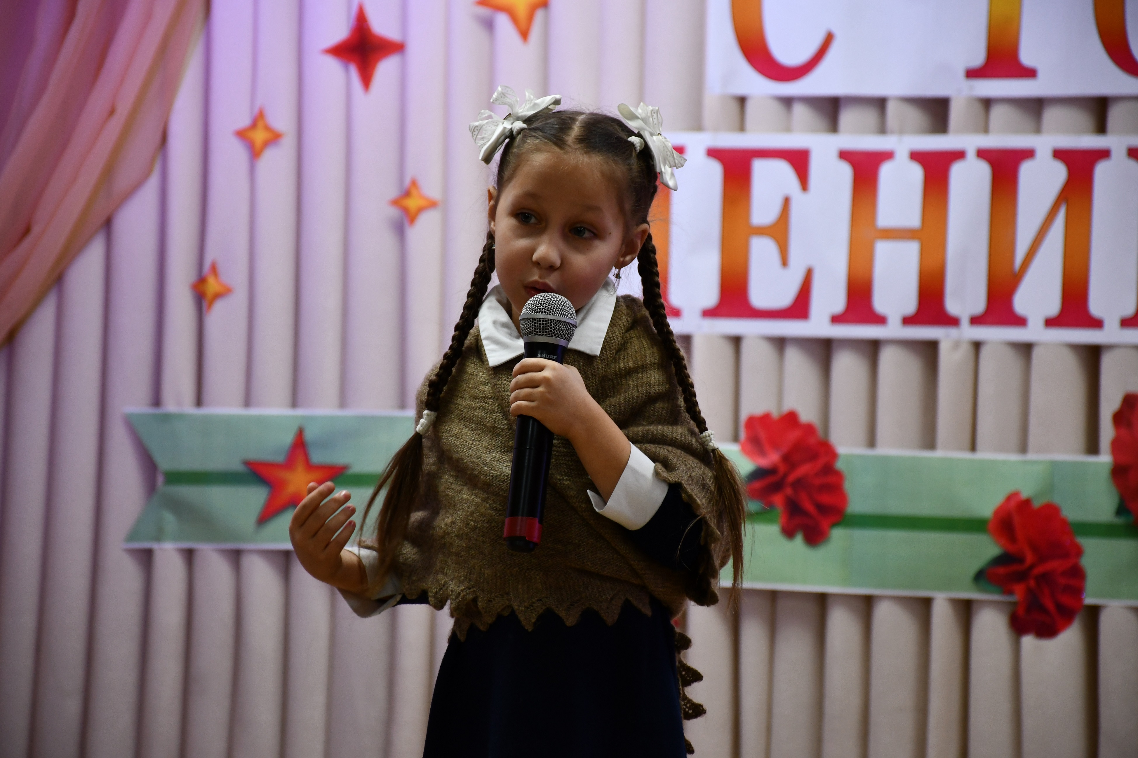 Песню «Ромашки, опаленные войной» спели участницы вокального коллектива «Настроение +» школы № 471. Танцевальными композициями украсили программу воспитанники коллектива бальных танцев «Констанция».