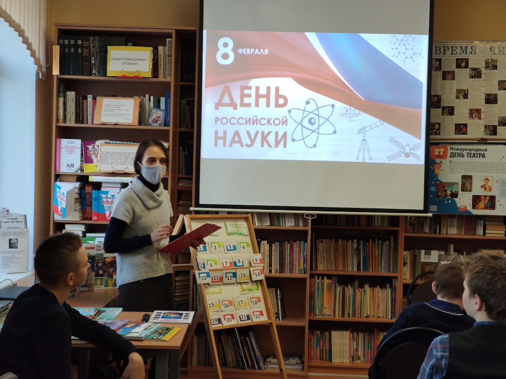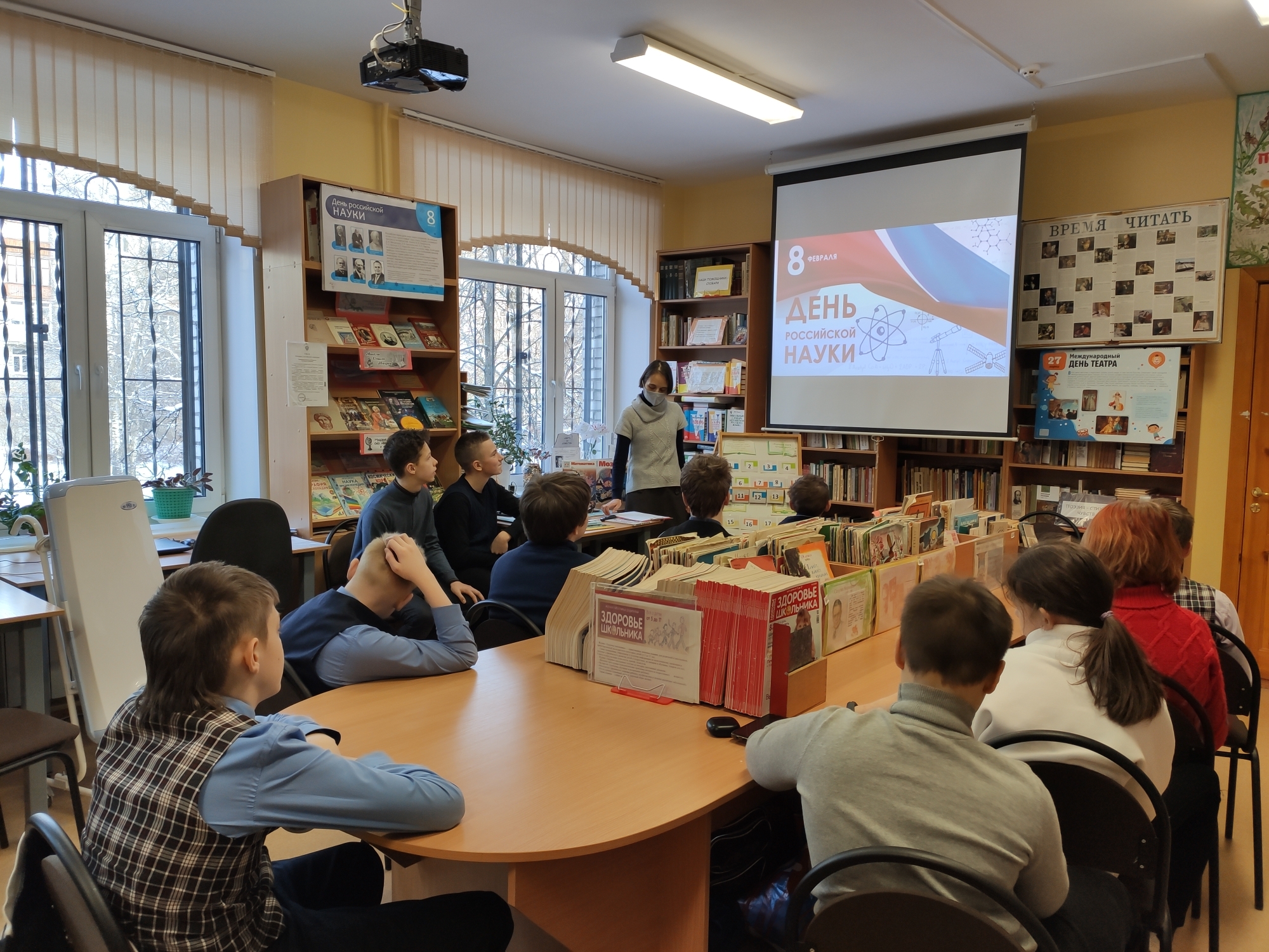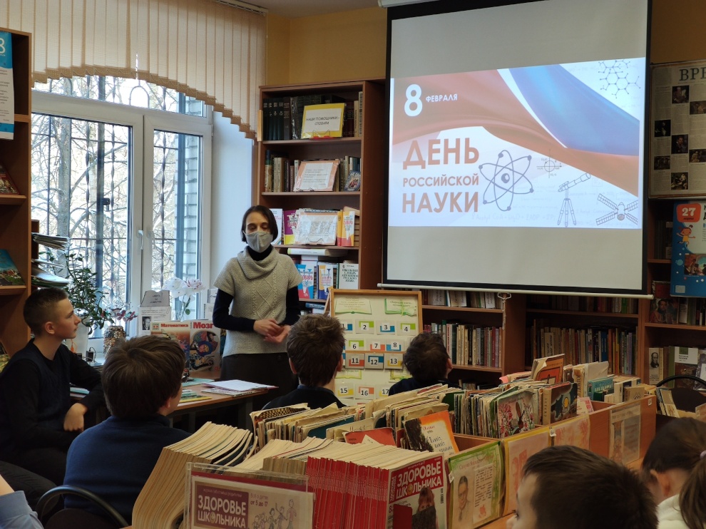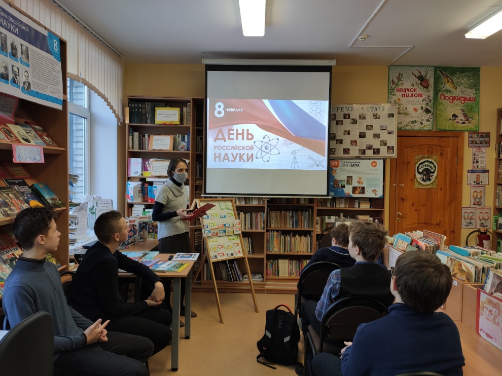 Сегодня в школе № 6 прошло мероприятие, посвященное «Дню Российской науки». Его провела специалист по культурно-досуговой деятельности Библиоцентра детского чтения «ЦБС Выборгского района» Ольга Кемпинская.