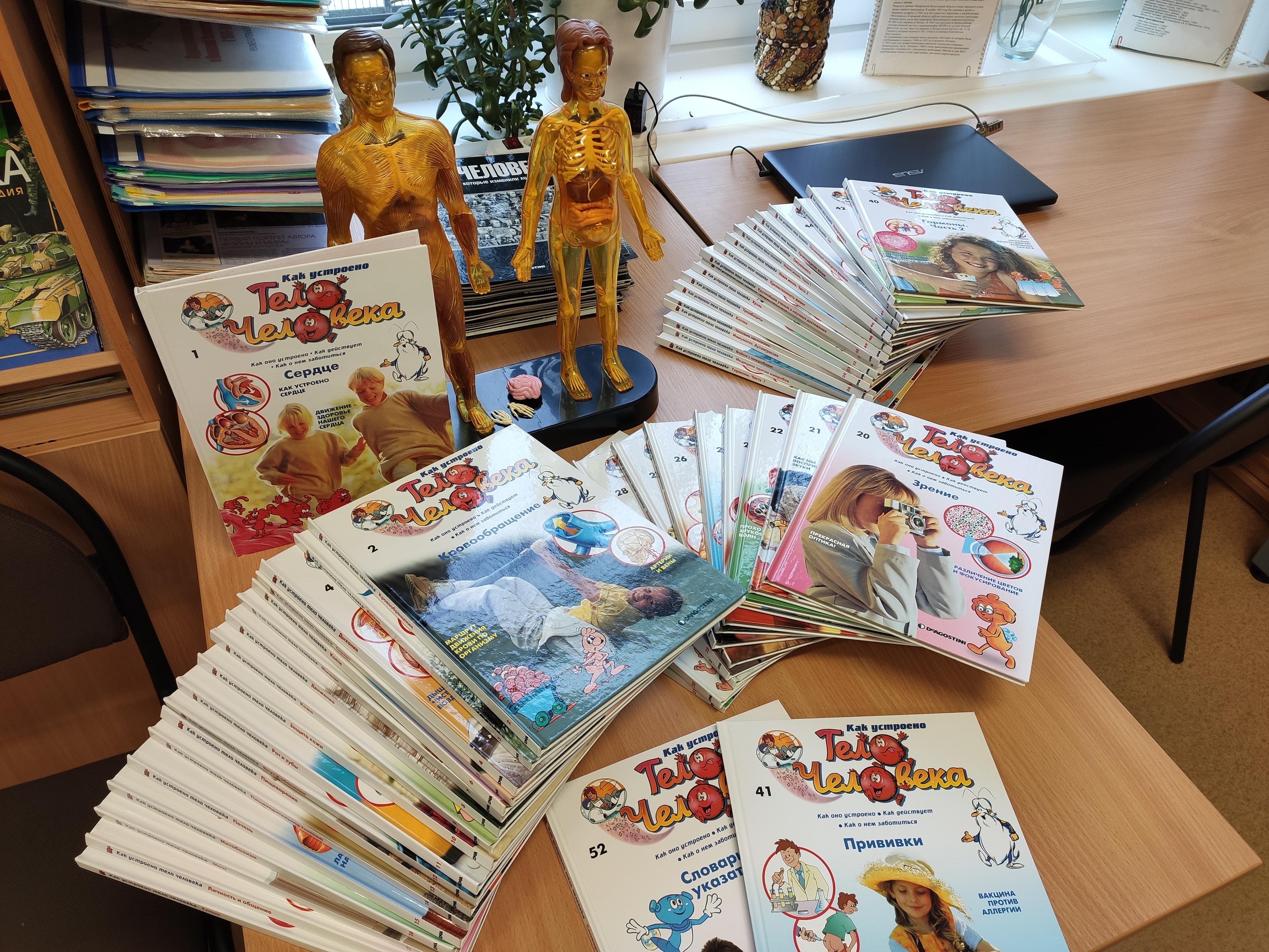 В завершение мероприятия представители Библиоцентра детского чтения «ЦБС Выборгского района» преподнесли школе прекрасный подарок: серию красочных энциклопедий «Тело человека» и 2 анатомические куклы.