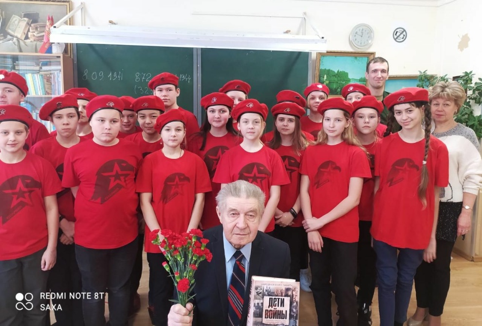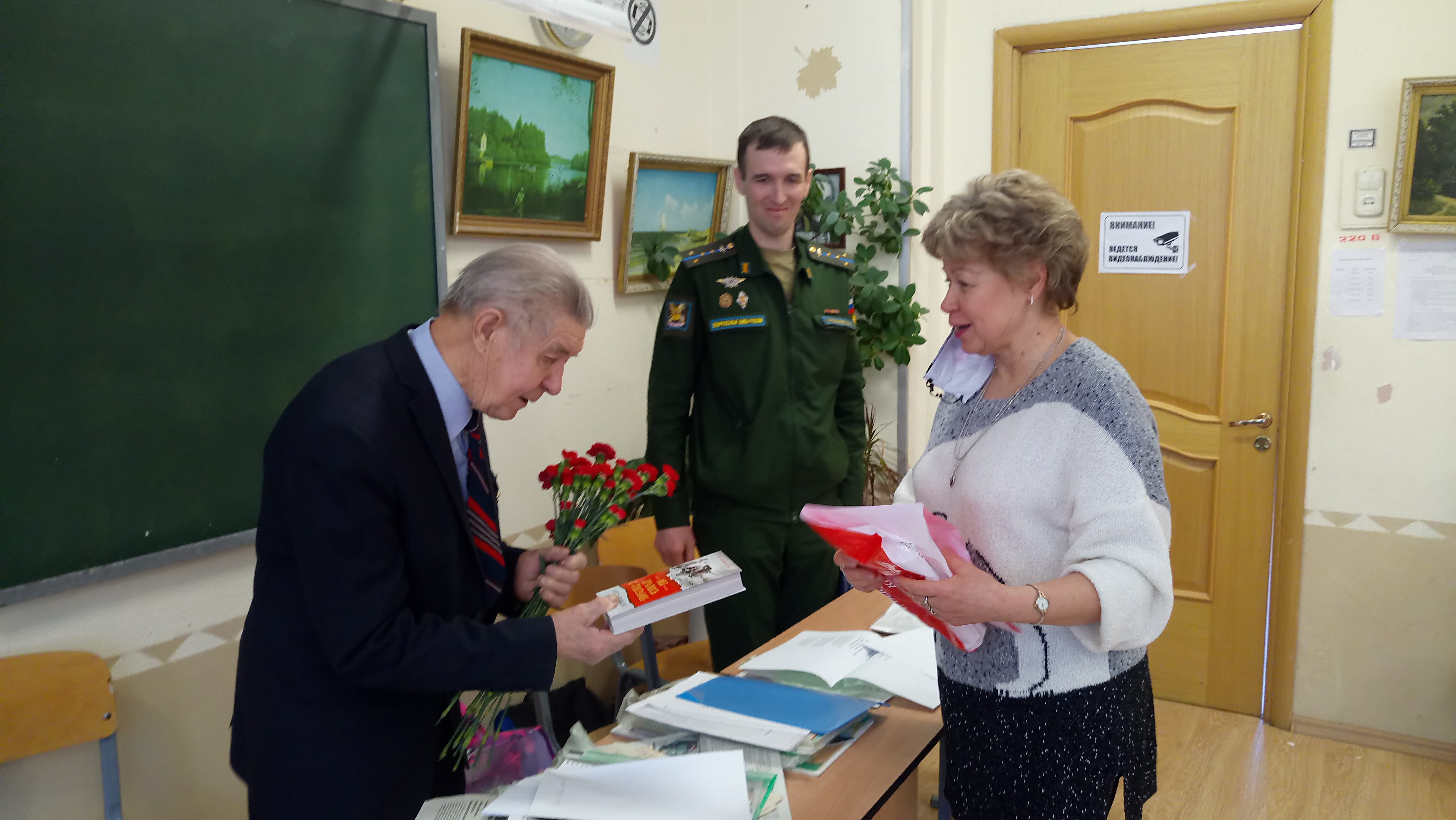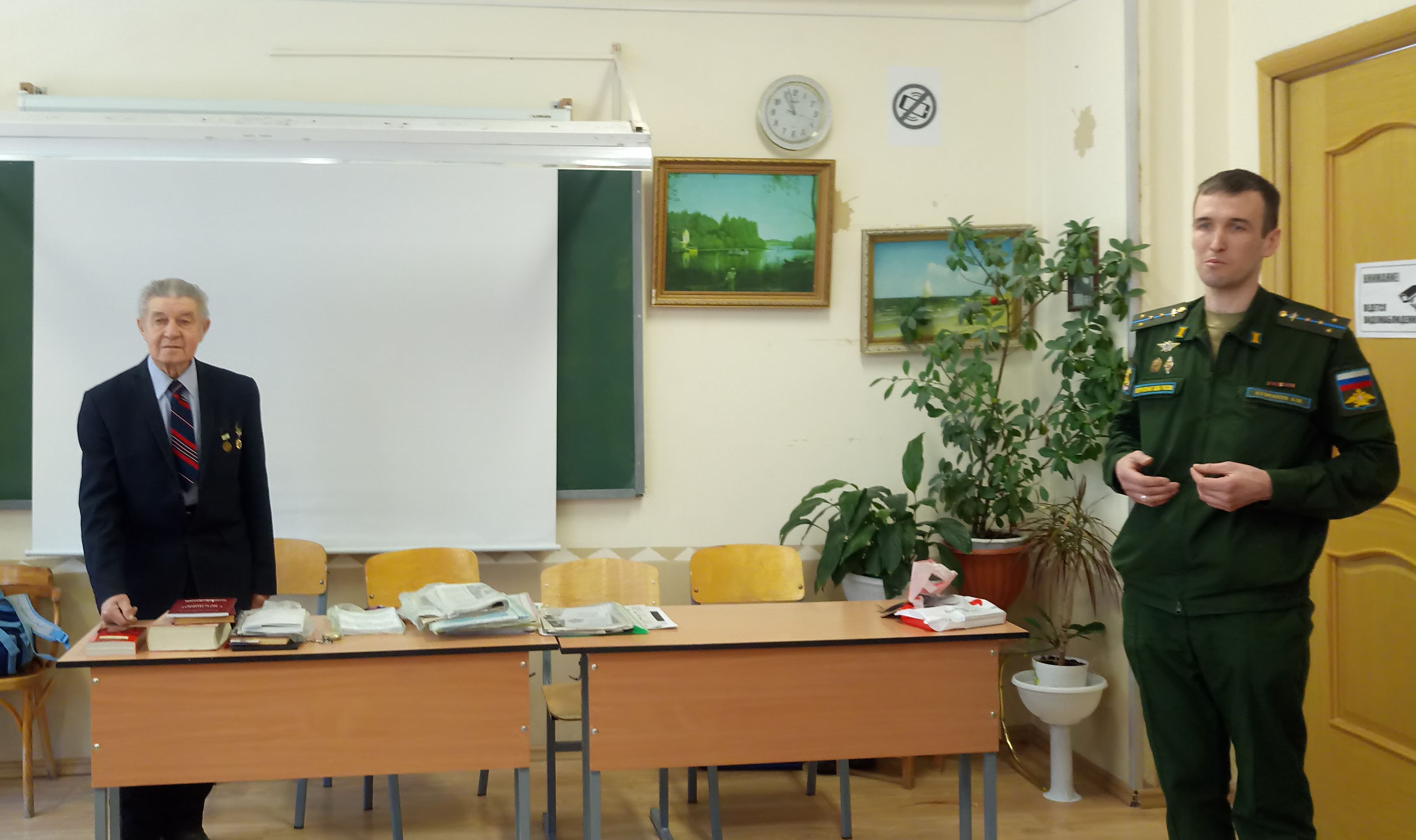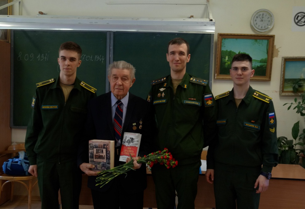 В гостях у 6 класса побывали Почетный житель города, Григорий Попов и курсанты военно-космической академии им. А.Ф. Можайского. Григорий Александрович родился в Ленинграде и в тяжелые блокадные дни находился в родном городе в течение триста дней, а потом был эвакуирован на большую землю. Он поделился детскими воспоминаниями с ребятами о своей семье.