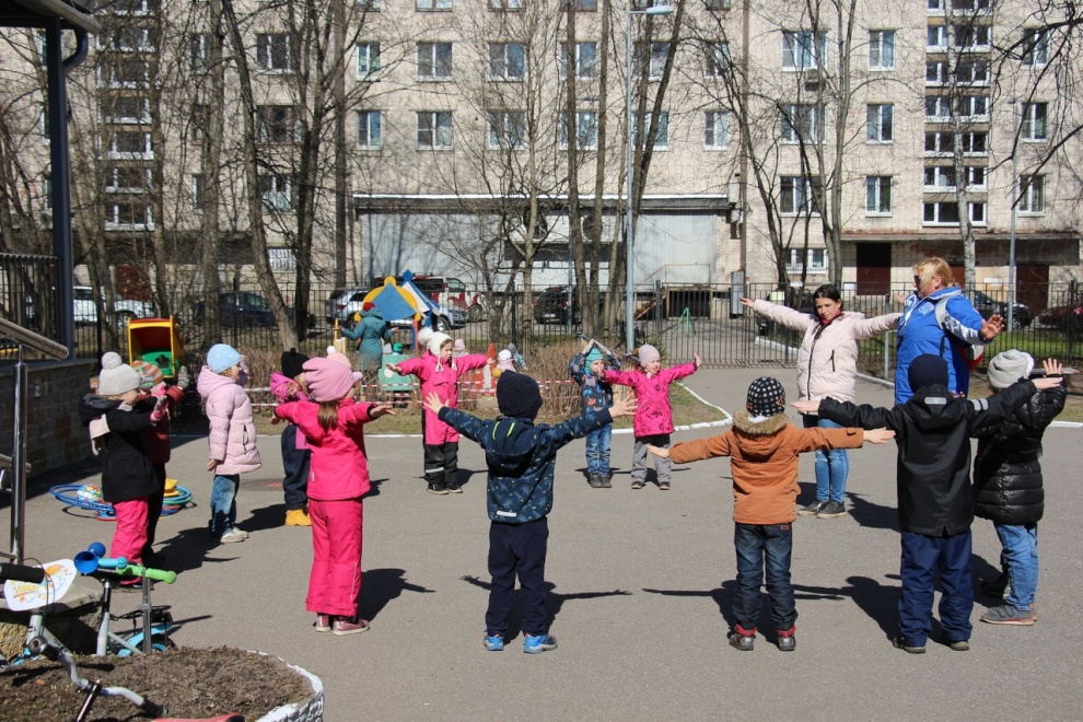 Улыбаясь теплому весеннему солнышку, воспитанники детского сада вышли на площадку. В предвкушении веселых спортивных занятий все ребята бегали, прыгали и танцевали под зажигательную музыку. После чего, разделившись на небольшие группы, под руководством инструкторов «Центра спорта Выборгского района» дети стали выполнять активные разминающие упражнения, кружиться и тянуться. Завершив разминку, ребята с радостью поучаствовали в командных эстафетах, интерактивных соревнованиях и попробовали свои силы в различных развивающих конкурсах. Во время каждого из соревнований ребята поддерживали друг друга, кричали и хлопали в ладоши.