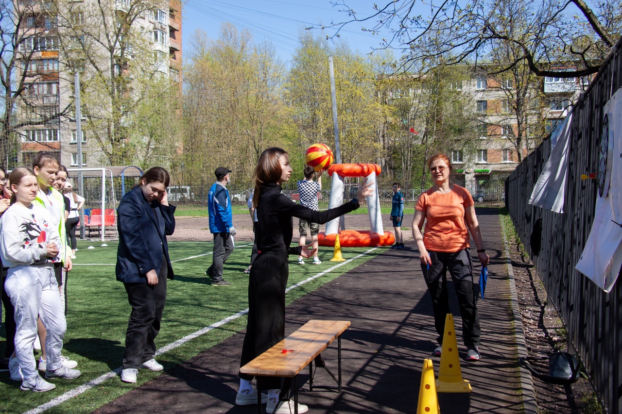 11 мая на спортивной площадке гимназии № 105 для школьников состоялось физкультурное мероприятие «Спортивные забавы».