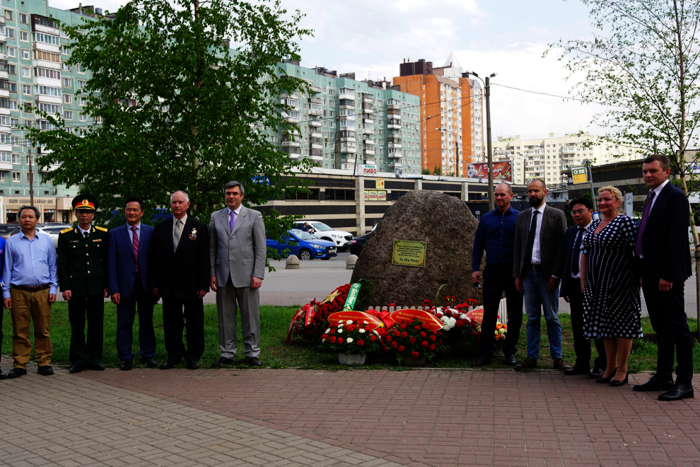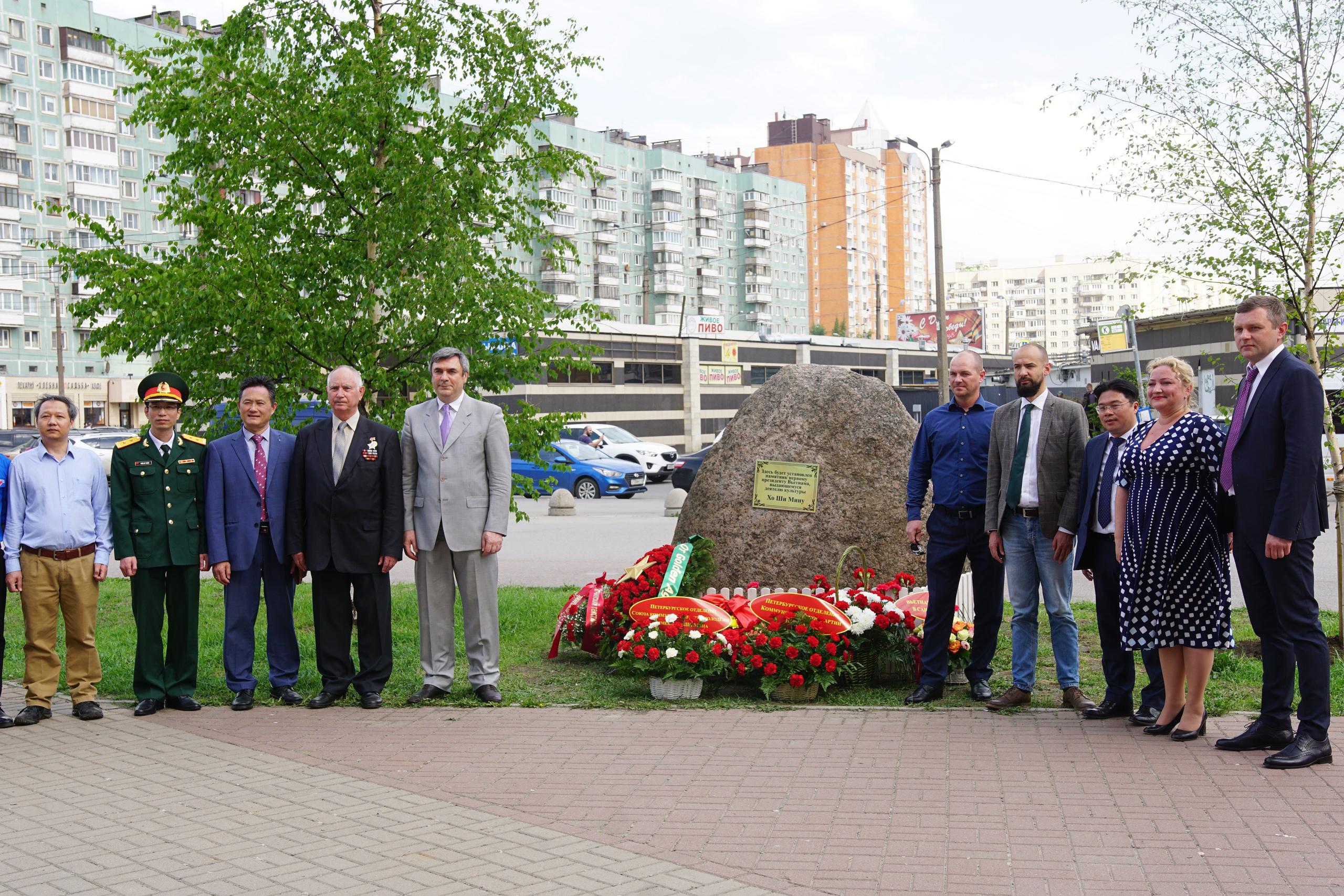 Сегодня состоялась торжественная церемония возложения цветов у закладного камня на месте установки памятника первому Президенту Демократической Республики Вьетнам Хо Ши Мину. Среди принявших участие в мероприятии были Арина Артемова – заместитель главы администрации района, а также Ле Динь Ву – председатель вьетнамской общины в Санкт‑Петербурге.
