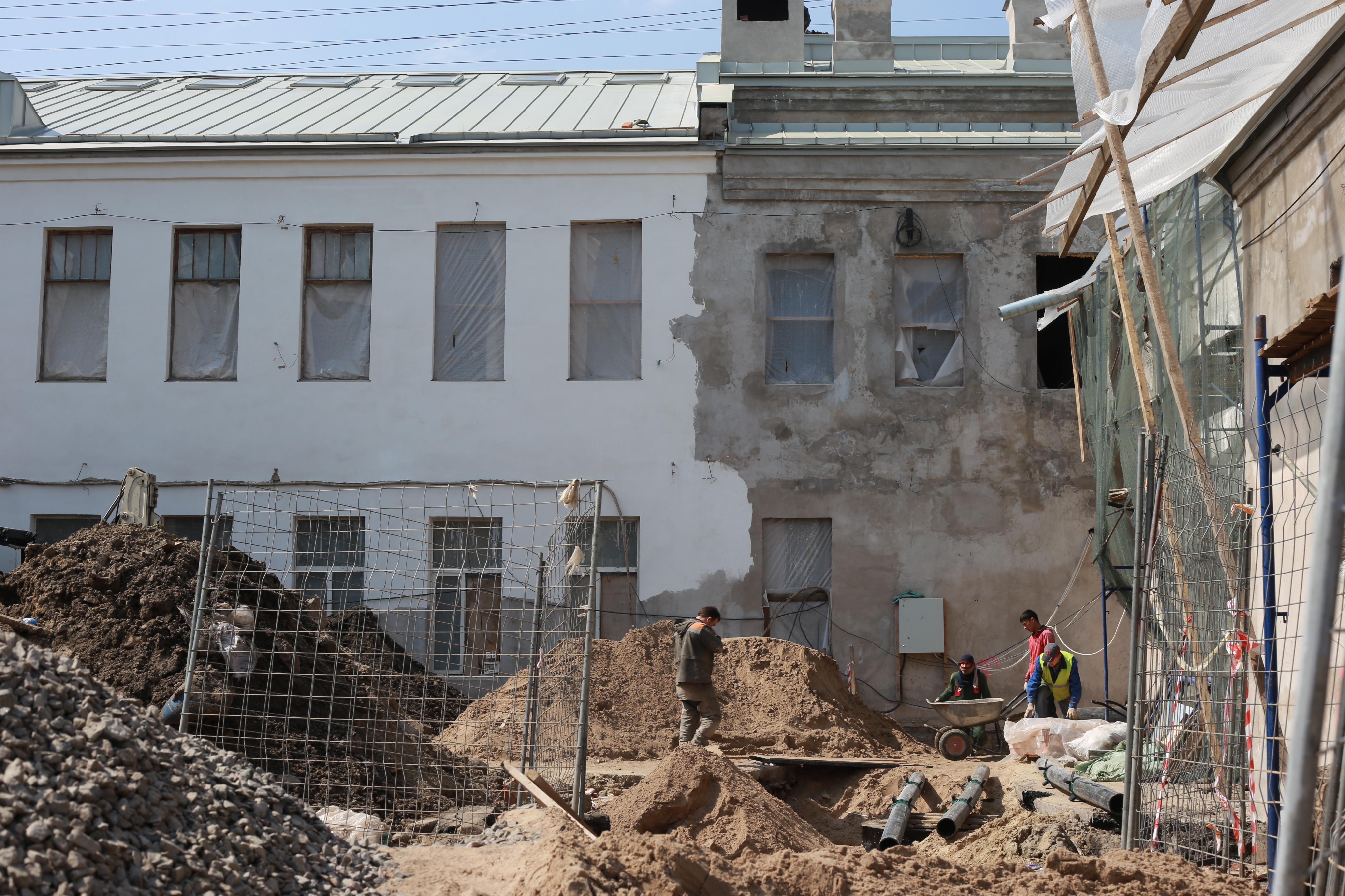«На данный момент идет замена всех наружных сетей: теплосети, водопровода, канализации. Также идут работы по инженерии. Мы полностью меняем электрику и слаботочки, отопление, вентиляцию. В части основного корпуса уже начались отделочные работы, штукатурятся и шпаклюются стены»,– рассказывает руководитель проекта Александр Разумов.