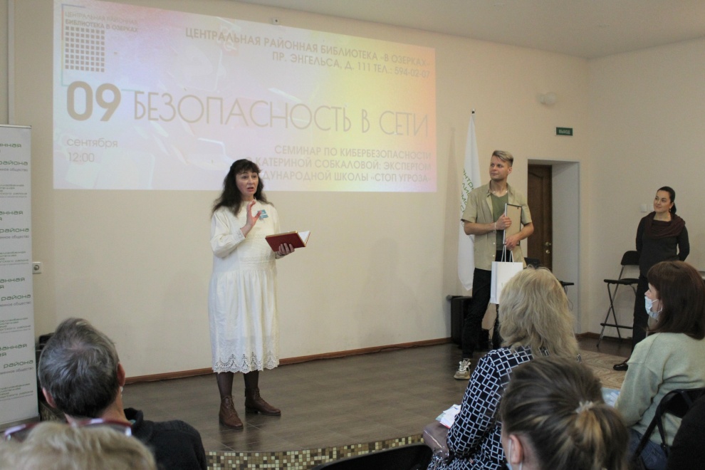 Сегодня в Центральной районной библиотеке «В Озерках» для сотрудников библиотек Санкт‑Петербурга состоялся семинар с Екатериной Собкаловой «Безопасность в интернете». Также состоялась закрытая трансляция семинара на официальном YouTube-канале СПб ГБУ «ЦБС Выборгского района» - «Библиотеки Выборгского района».
