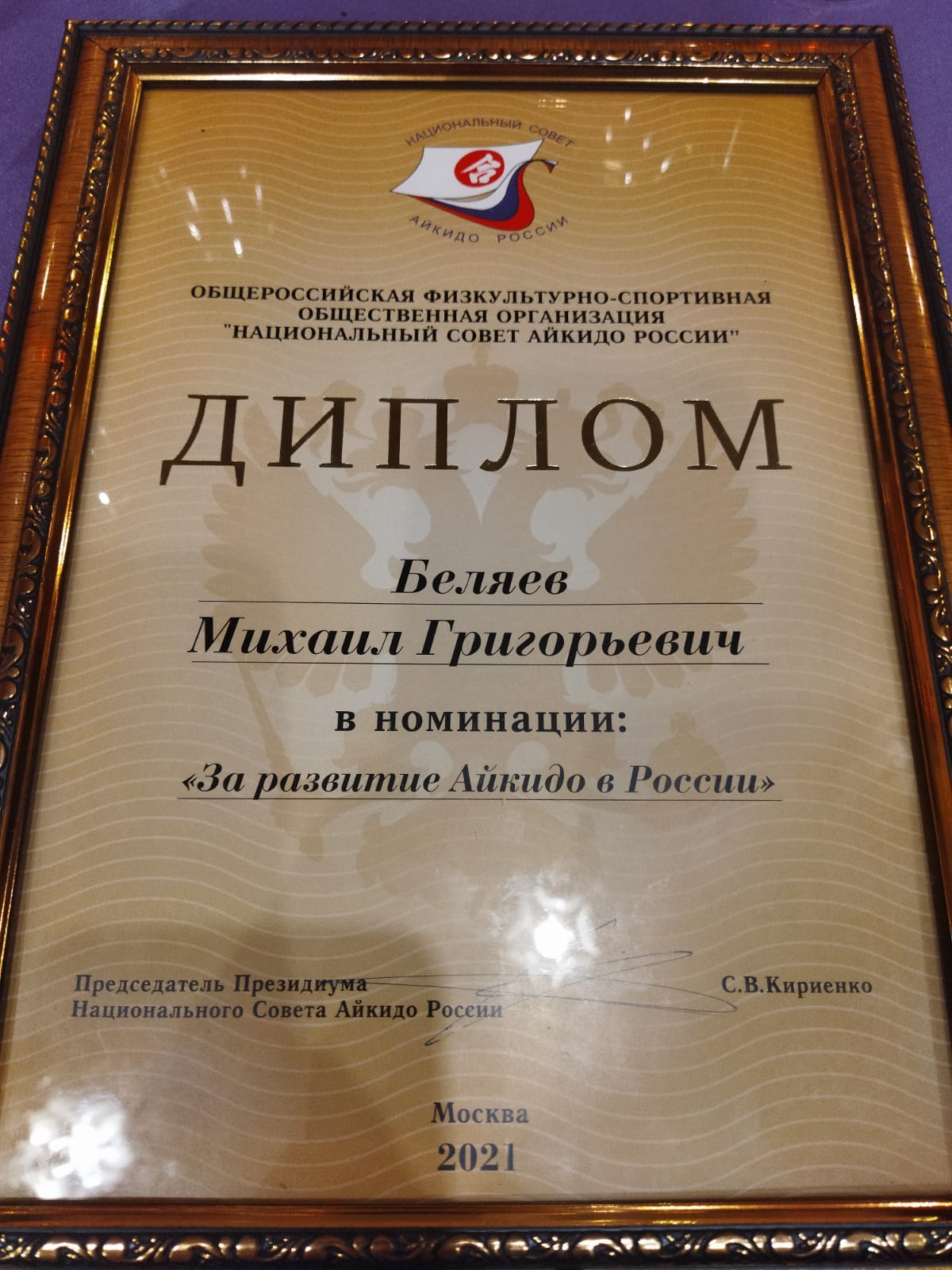 Тренер спортивной школы олимпийского резерва водных и других видов спорта Выборгского района Беляев Михаил стал лауреатом премии "Торнадо" в номинации "За развитие айкидо в России", а также Михаилу Григорьевичу присвоено звание "Заслуженный мастер боевых искусств".