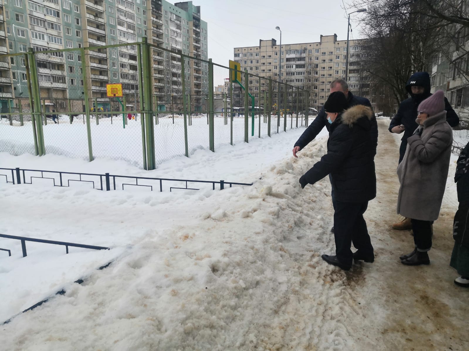 Далее Временно исполняющий обязанности главы проехал на адрес: Суздальский пр.,3. На качество уборки этой территории поступало наибольшее количество жалоб от жителей.