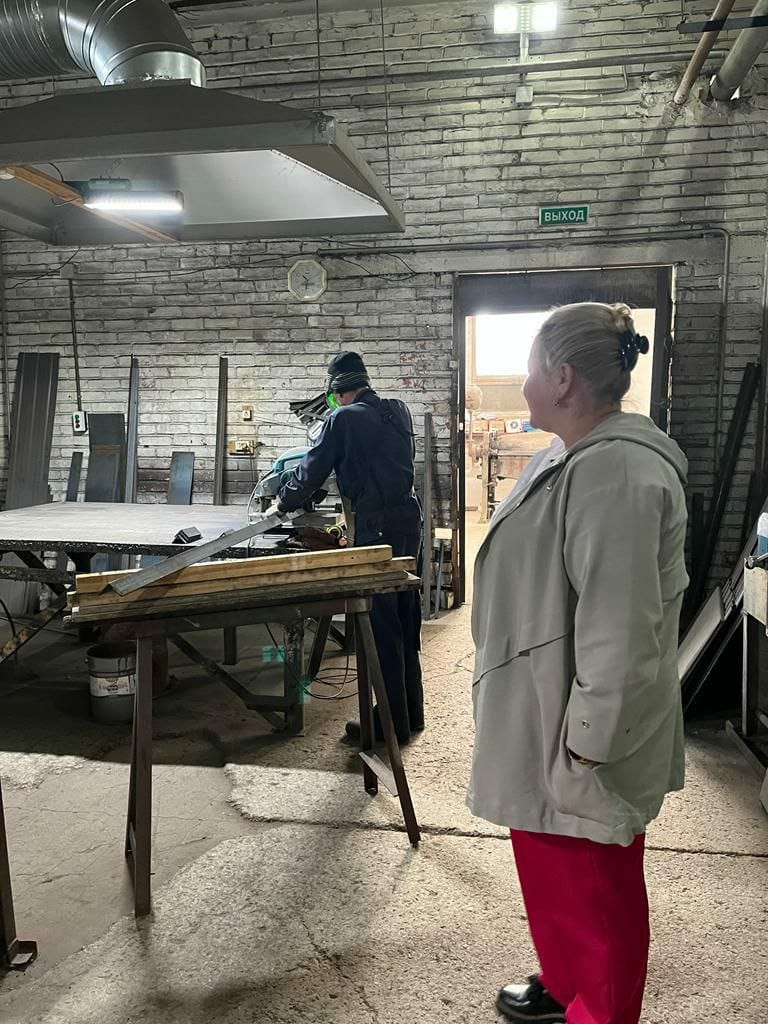 Также, Арина Александровна посетила производственный участок металлообработки, где изготавливают элементы для ремонта газонных ограждений.