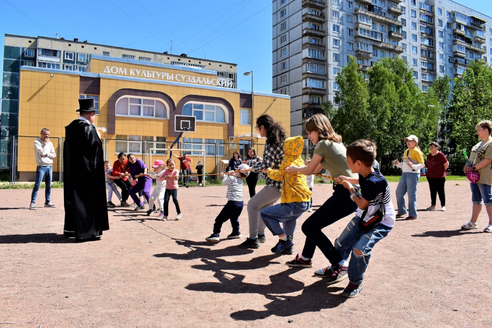 7 июня на уличной площадке Дома культуры «Суздальский» (Суздальский проспект, дом 3, корпус 1) прошла праздничная развлекательная программа «По страницам Пушкина...». Она была посвящена Дню русского языка и Дню рождения Великого поэта.