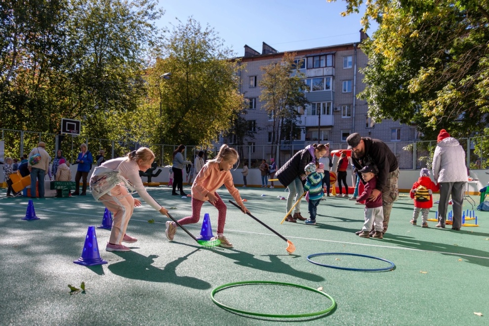 Особенным это мероприятие стало еще и потому, что ознаменовало собой открытие площадки после ремонта. Для жителей здесь появилась новая хоккейная коробка с безопасным покрытием, зона для игры в баскетбол, а также небольшая площадка под навесом для занятий спортом на свежем воздухе.