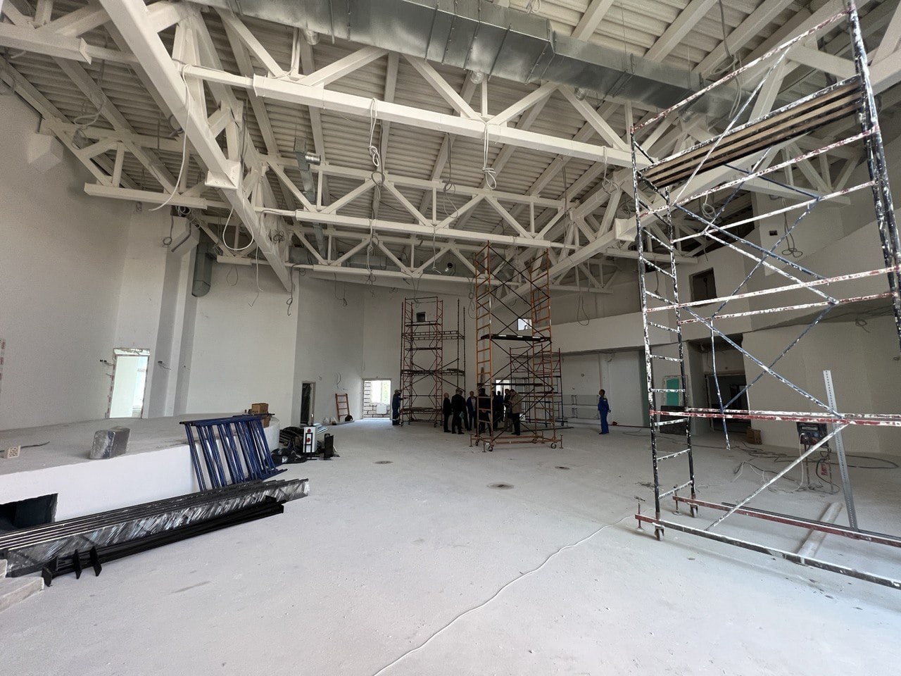 Строительные работы идут в соответствии с графиком, объект сдадут в этом году. Напомним, что старое здание снесли по причине износа коммуникаций, а также оно не соответствовало современным требованиям учебно-воспитательного процесса.