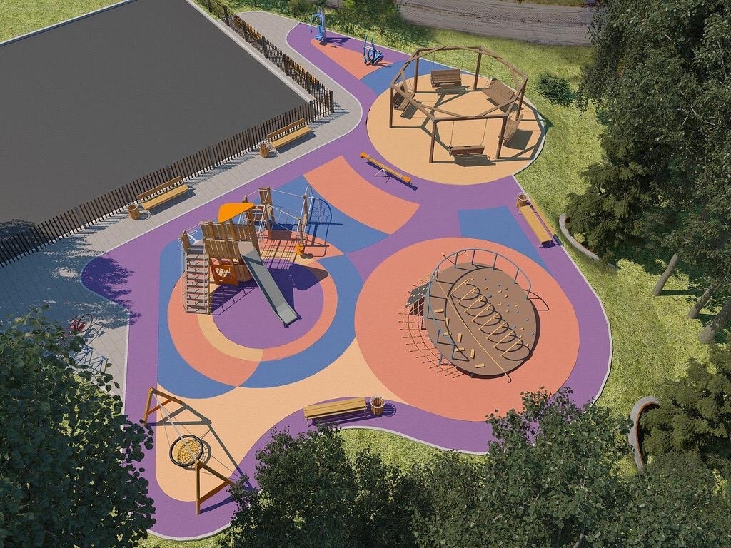 Детский городок и качели для юных жителей, спортивный элемент-скалодром и уличные тренажеры для подростков и молодежи. На площадке будет уложено безопасное полимерное покрытие, выполнены работы по благоустройству и озеленению, установлены скамейки для отдыха жителей.
