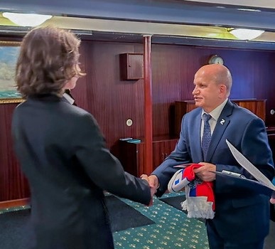 В торжественной церемонии приняли участие Никишина Наталия Евгеньевна, заместитель главы администрации Выборгского района и Цыганцова Анжелика Александровна, инспектор отдела по вопросам миграции УМВД России по Выборгскому району Санкт‑Петербурга, лейтенант полиции.