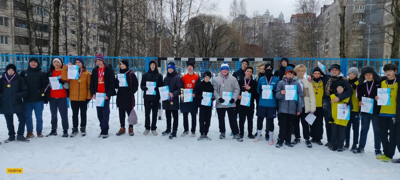 Прошло традиционное физкультурное мероприятие по дворовому футболу на снегу «Снежная лига» для жителей Выборгского района Санкт‑Петербурга.