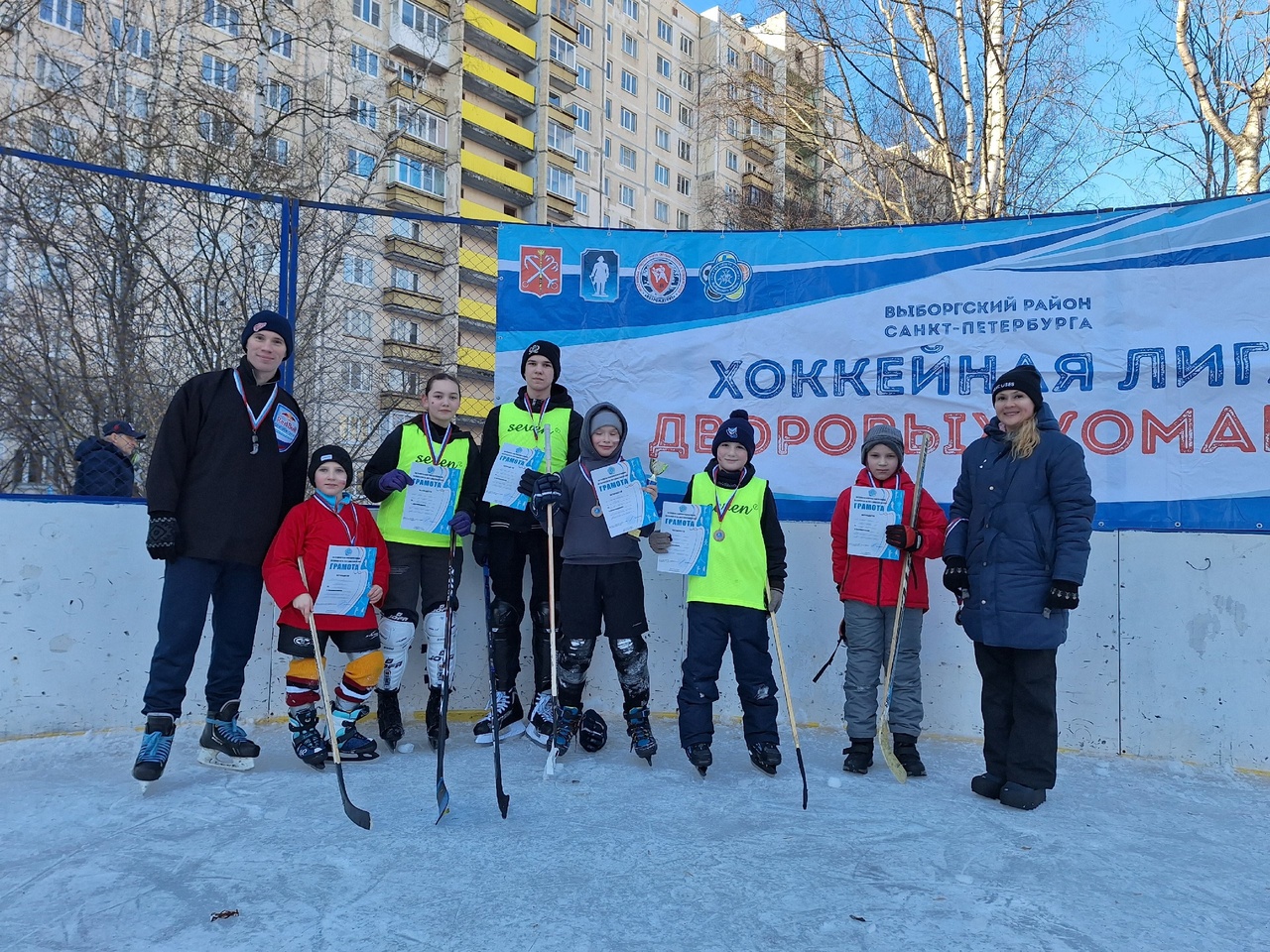 18 февраля на катке на улице Композиторов состоялось традиционное физкультурное мероприятие по хоккею «Хоккейная лига дворовых команд» для жителей Выборгского района Санкт‑Петербурга.
