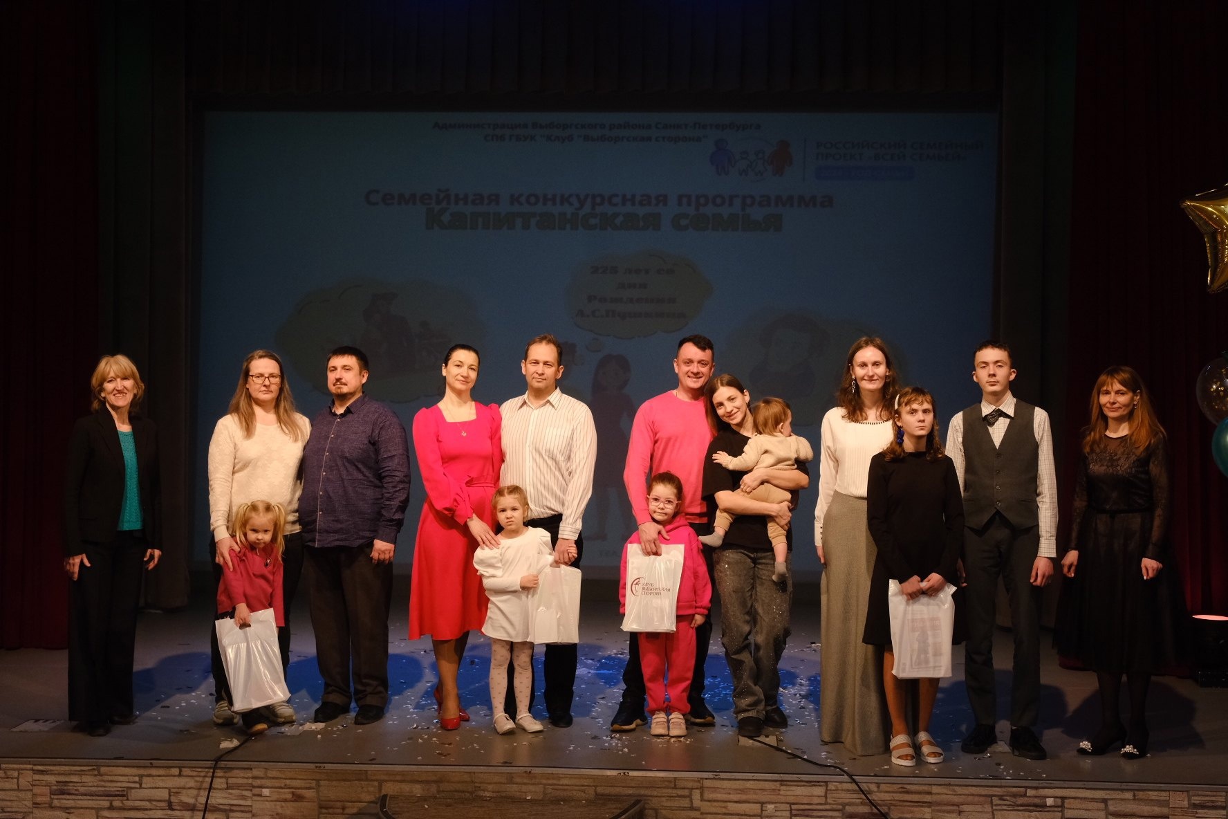 В День защитника Отечества в клубе «Выборгская сторона» состоялся конкурс «Капитанская семья», посвящённый 225-летию со дня рождения великого поэта А.С.Пушкина. Дружные семьи соревновались в находчивости, креативности и импровизации, ведь задачи ставились непростые: соединить IXX век и настоящее время, произведения Александра Сергеевича и свою личную историю, подкрепленную авторскими фотографиями.