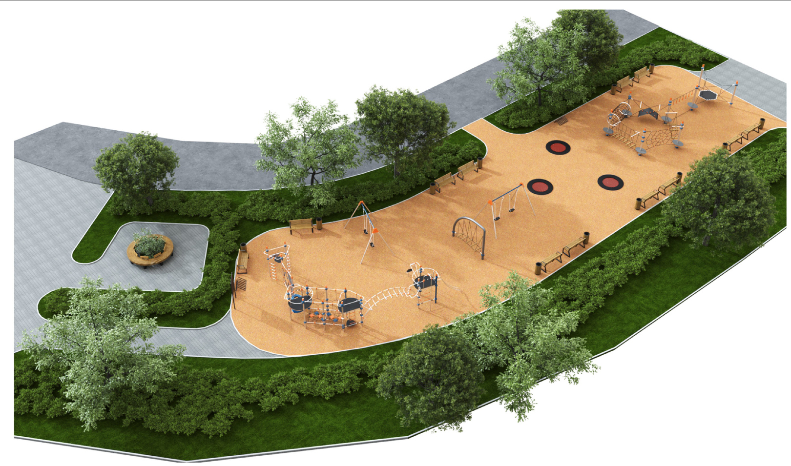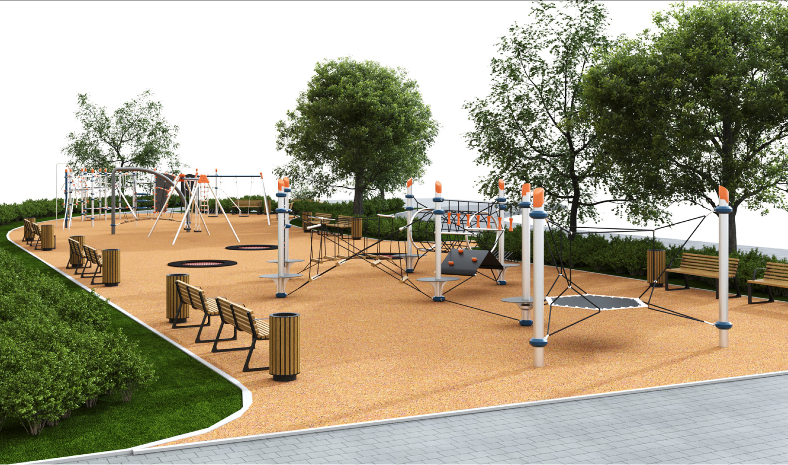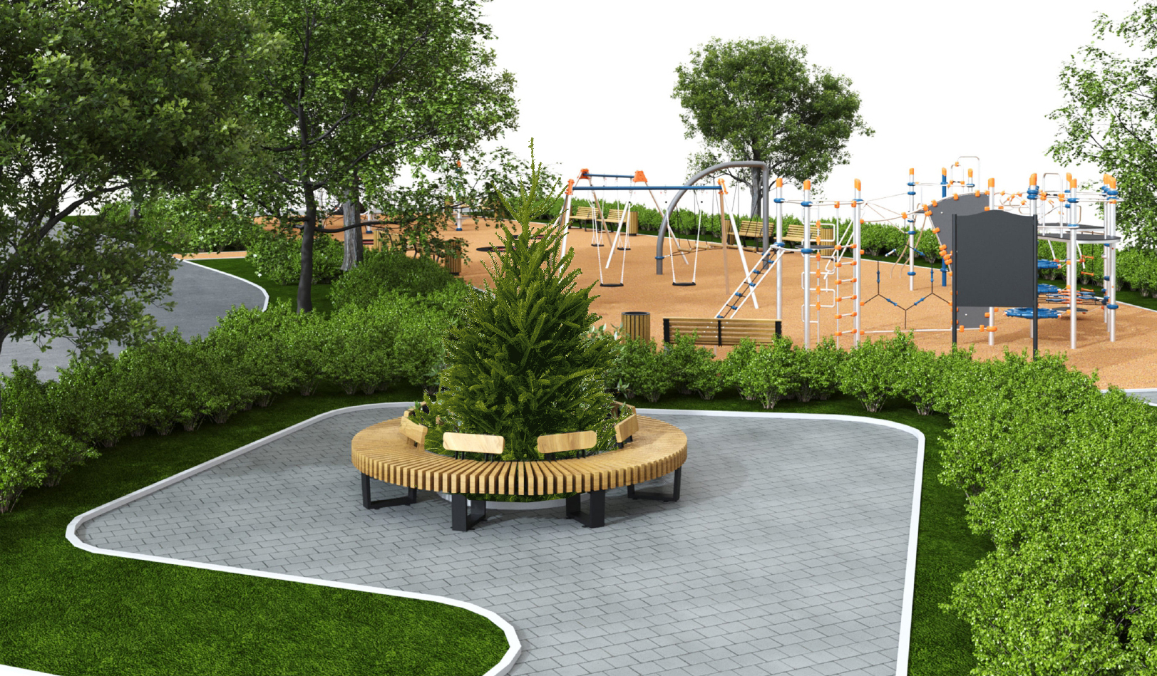 На данной территории появится сразу 2 новых объекта: детская площадка и пространство для занятий спортом. Так, в игровой зоне установят качели с разнообразными подвесами, горку и песочный городок, а в спортивной – воркаут-комплекс и теннисные столы. Их разделят кусты сирени, посадка которых также запланирована проектом.