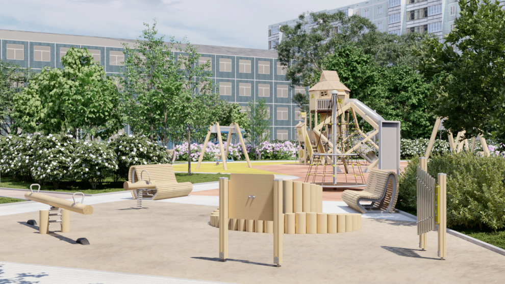 Субсидирование в рамках программы «Петербургские дворы» позволит обустроить и масштабную территорию у проспекта Просвещения. «На протяжении трех лет мы планомерно осуществляем комплексное благоустройство кварталов, ограниченных улицами Хошимина, Композиторов и, непосредственно, проспектом Просвещения. Два года назад мы провели работы по адресу: ул. Хошимина, 6. В прошлом году были обновлены несколько дворов на ул. Композиторов, 15. Сейчас переходим к территории дома №7, к. 2 по проспекту Просвещения», – рассказал глава муниципального образования. На участке общей площадью более 1000 м2 появятся две детские площадки. На одной из них разместят оборудование для ребят младшего возраста: качели-весы и развивающие панели. На второй появятся различные многофункциональные комплексы и горка для детей постарше. Помимо этого, проект благоустройства предусматривает создание спортивного пространства. На нем установят брусья различных уровней, турники, скамьи для выполнения упражнений на пресс. Рядом с ними возведут и специальный навес, расположив под ним современный воркаут-комплекс. Подобное архитектурное решение позволит местным жителям заниматься спортом в любую погоду. Все три зоны планируется отделить друг от друга пешеходными дорожками с покрытием из тротуарной плитки. Особое внимание уделяется озеленению.