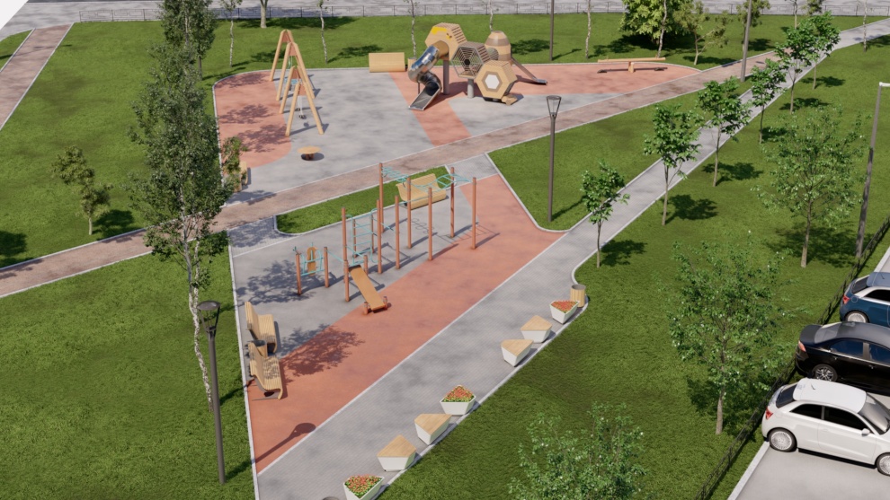 «Мы полностью готовы приступить к его реализации. С началом агротехнического периода – 15 апреля – начнутся активные работы», – подчеркнул Константин Олегович. Уже к концу лета здесь оборудуют общественное пространство с современным спортивным и игровым оборудованием. Детскую площадку оснастят многофункциональным комплексом с горками и качелями разных видов. Для безопасности ребят на площадке появится и специальное травмобезопасное покрытие общей площадью 396,8 м2 . Помимо этого, для обеспечения комфортного отдыха жителей будет установлена новая уличная мебель: 11 скамеек необычной геометрической формы и 9 садово-парковых вазонов.