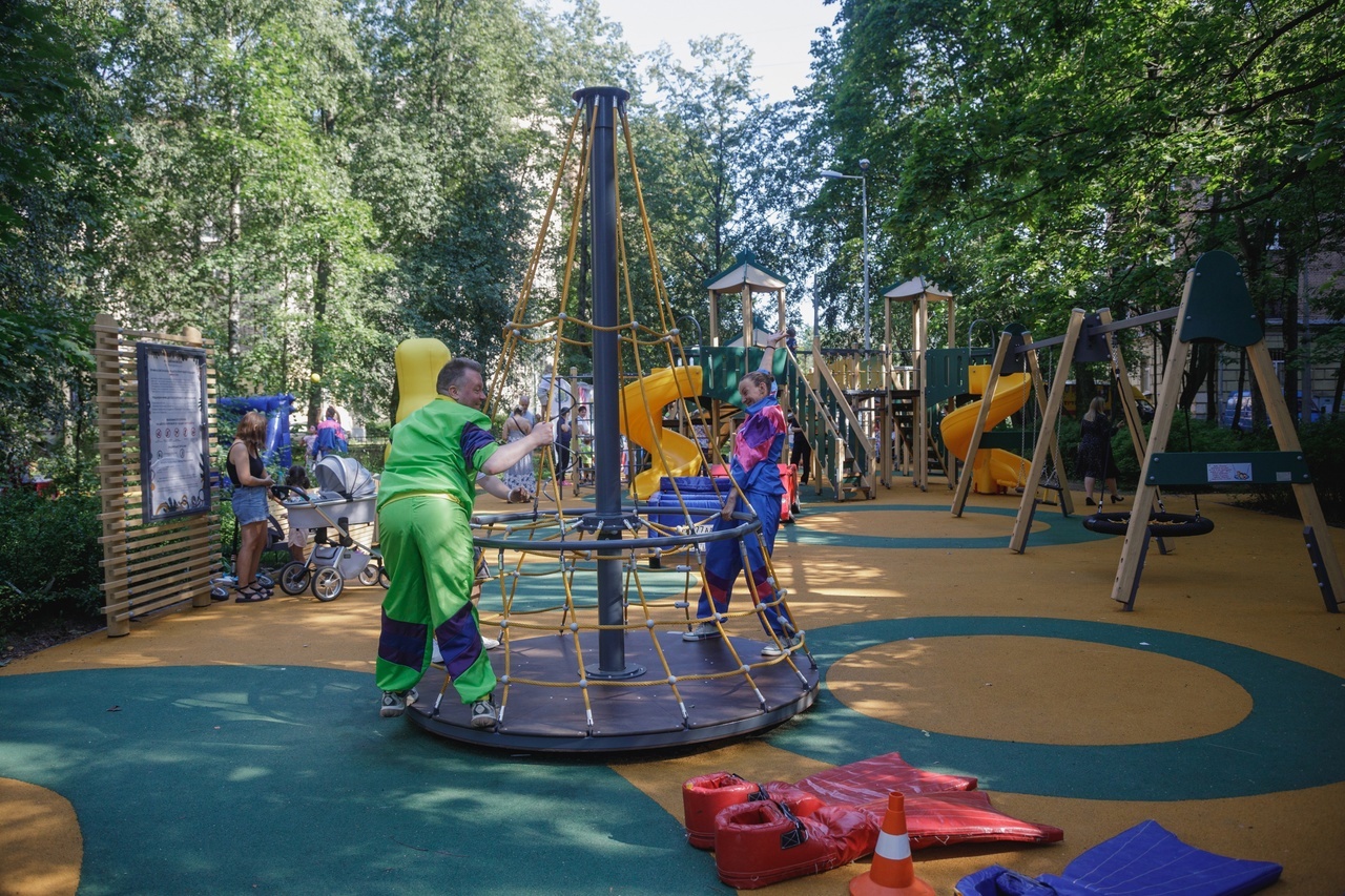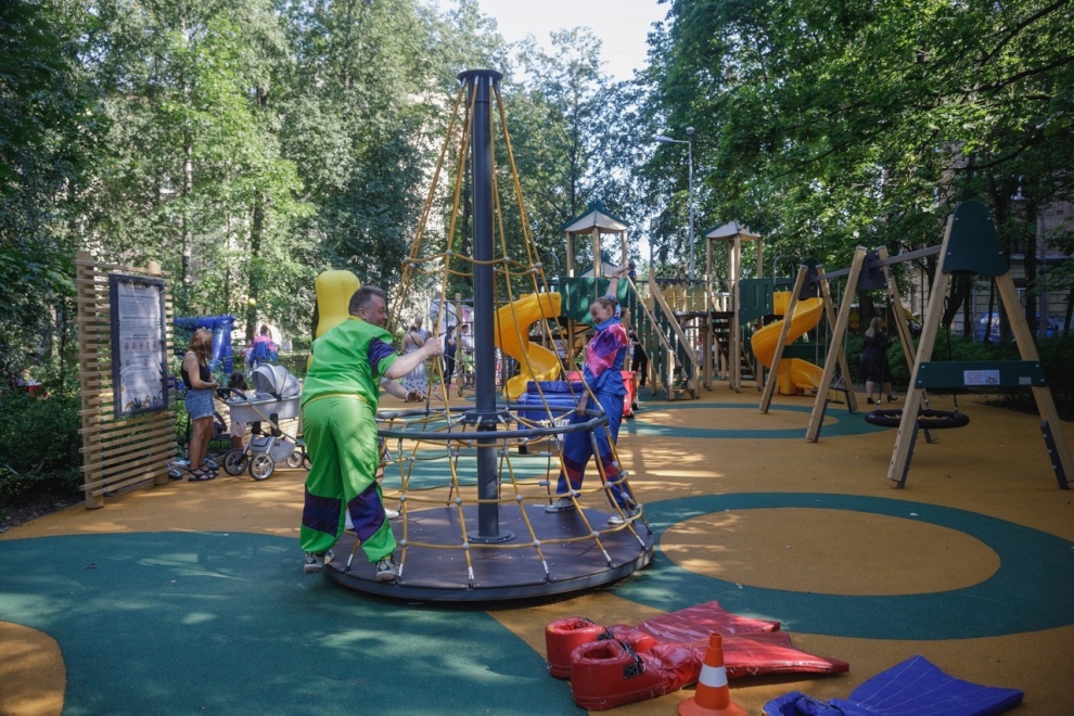 Дети и взрослые с энтузиазмом тестировали новое игровое оборудование, участвовали в играх аниматорами и ведущим, а родители наслаждались праздничным концертом с участием танцоров и аниматоров. И, конечно же, особенное удовольствие всем доставили неограниченные порции мороженого и сладкой ваты, которые раздавали всем желающим. Особым моментом стало вручение памятного сувенирного ключа активной жительнице 6 дома на Жака Дюкло, которое вошло уже в традицию. Теперь дети и родители могут проводить время, играть и просто наслаждаться красивым видом на новой, современной площадке.