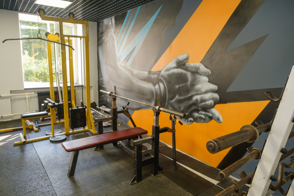 После осуществления ремонтных работ спортивные залы клуба приобрели стильный и современный дизайн. В одном из залов есть интересный и красивый акцент - рисунок на стене, выполненный в технике аэрография, который выполняет несколько функций: служит элементом декора, вдохновляет спортсменов и создает определенную атмосферу.