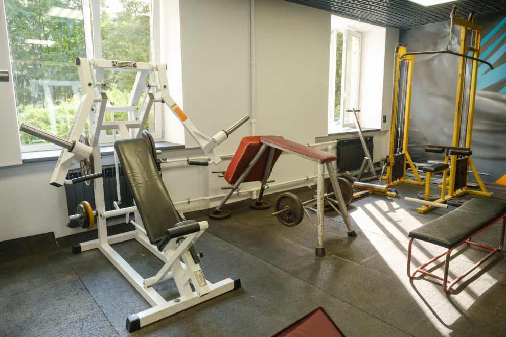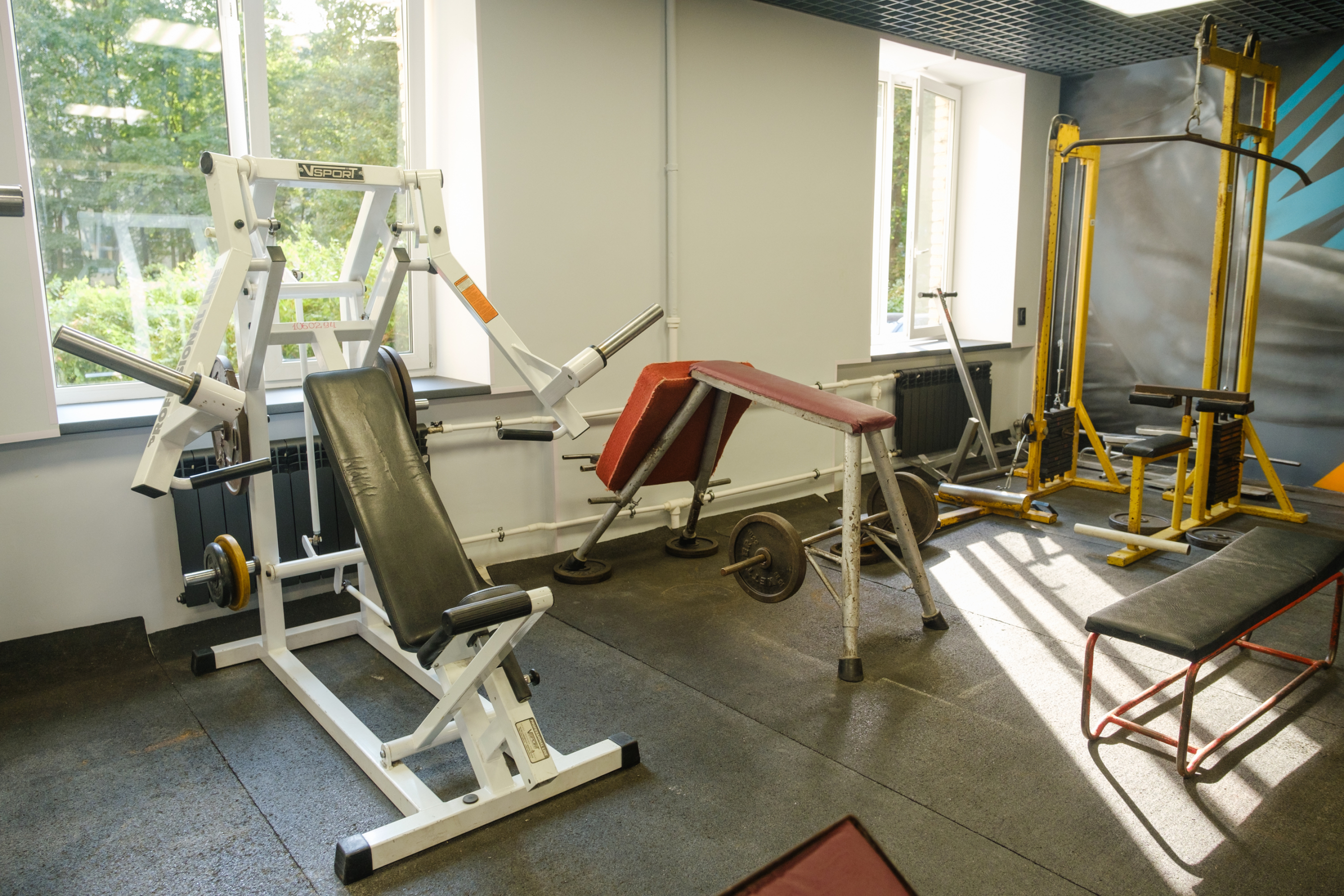 В спортивных залах выровнены и окрашены стены, произведена замена радиаторов отопления, электрических розеток и выключателей. Полностью отремонтированы санузлы и душевые. Смонтирован потолок «Грильято», на стены нанесена декоративная штукатурка.