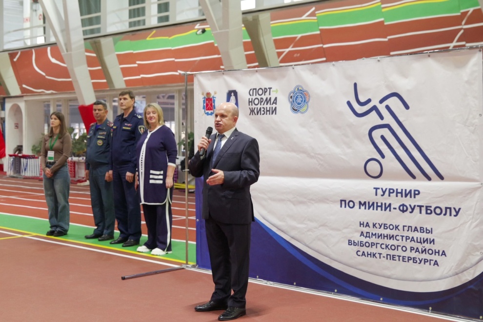 26 октября в спортивном Комплексе им. В.И. Алексеева в рамках национального проекта «Демография» и регионального «Спорт-норма жизни!» состоялся ежегодный турнир по мини-футболу на Кубок главы администрации Выборгского района Санкт‑Петербурга.