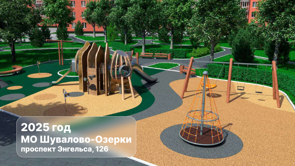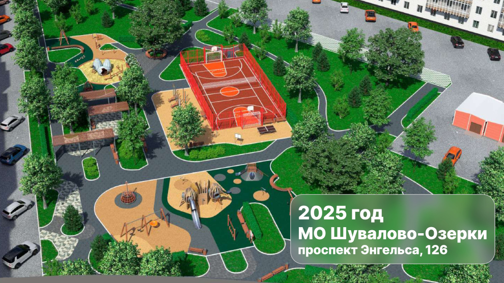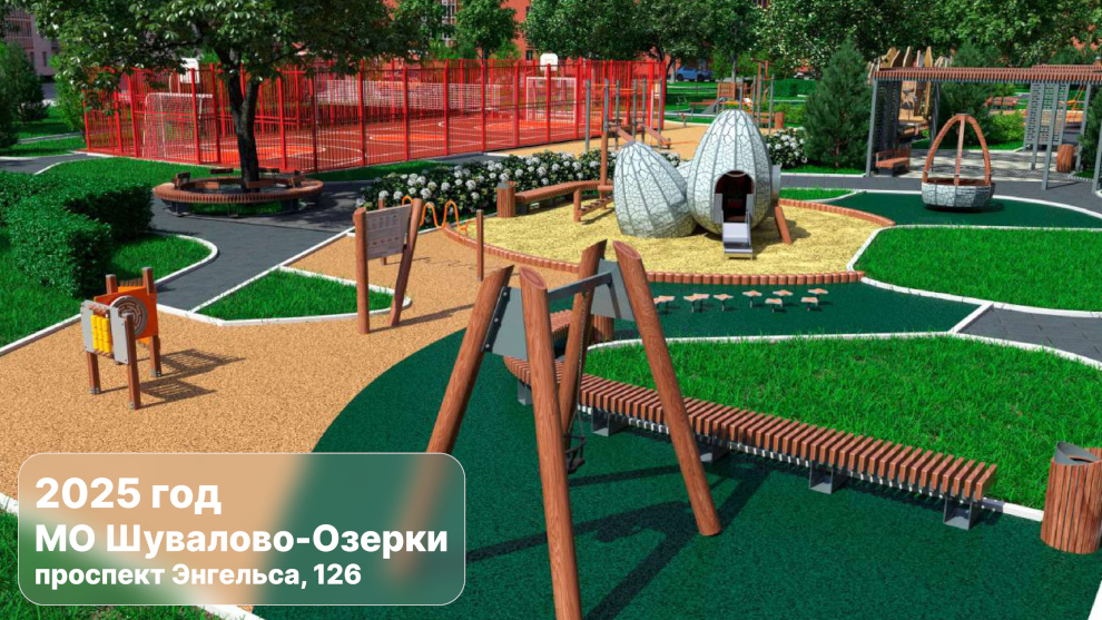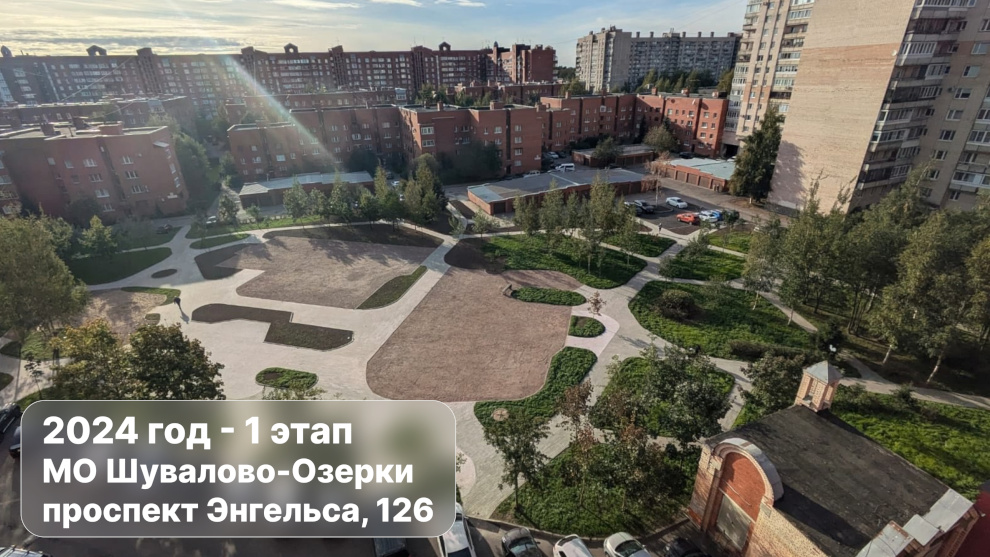 В 2025 году на территории МО Шувалово-Озерки в рамках федерального проекта «Формирование комфортной городской среды», который с этого года входит в состав национального проекта «Инфраструктура для жизни», будет благоустроено новое общественное пространство на проспекте Энгельса, 126, к. 1.
