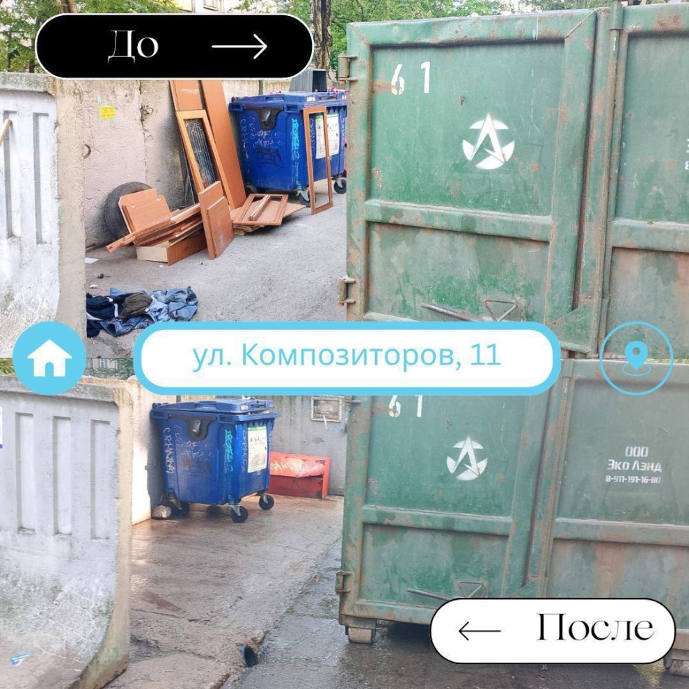 Сегодня мы делимся с вами фотографиями в формате «До/После» и рассказываем об усердной работе команды «Суздальского», которая заботится о чистоте внутриквартальных территорий, входящих в состав земель общего пользования нашего района. Каждый день за порядком следят 68 дворников, а организацией и контролем их работы занимаются начальник участка, 3 мастера и 2 техника, стремясь обеспечивать высокие стандарты обслуживания.